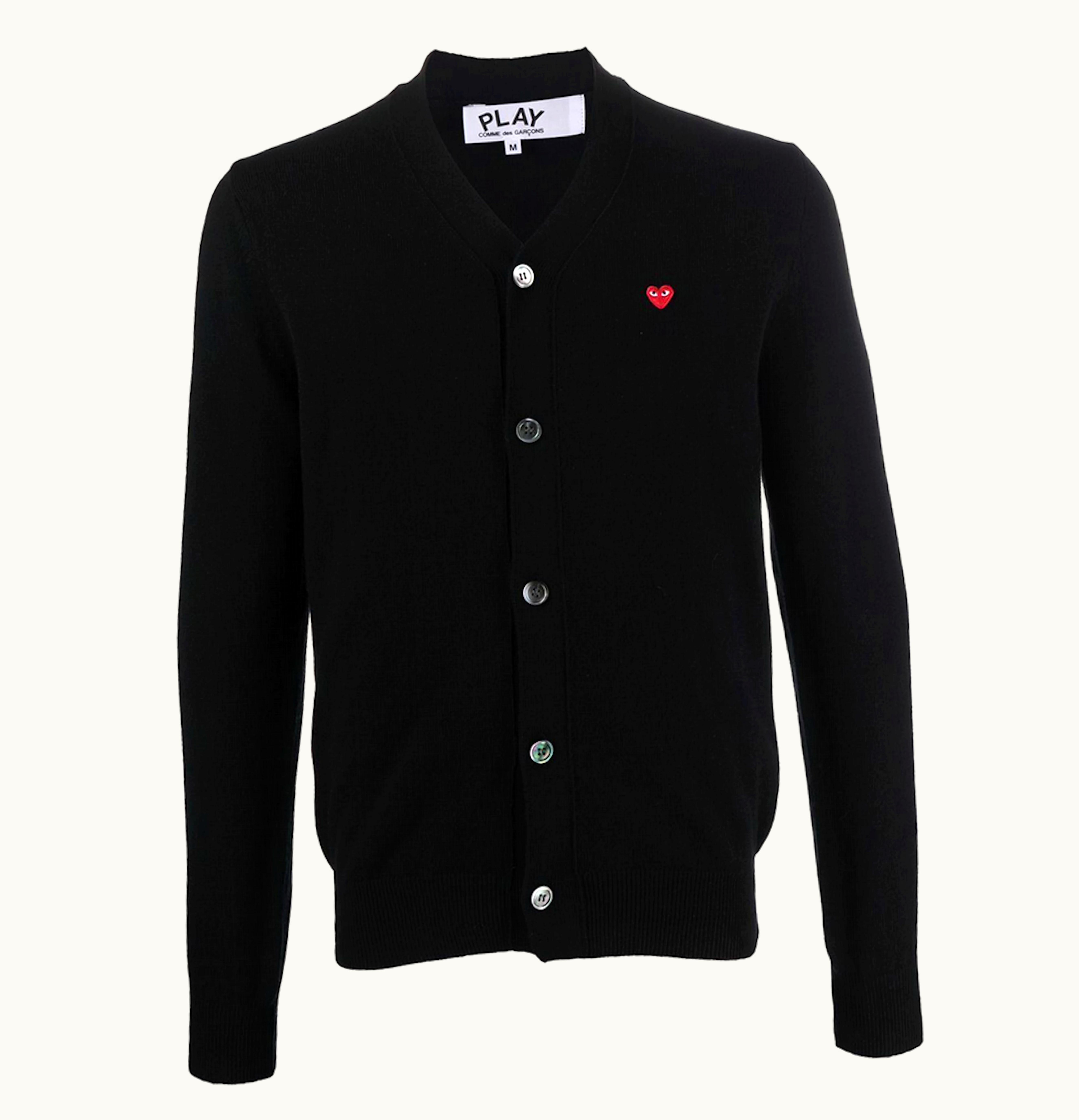 Comme des Garcons PLAY Fine Knit Wool Cardigan Black Red | GLINT