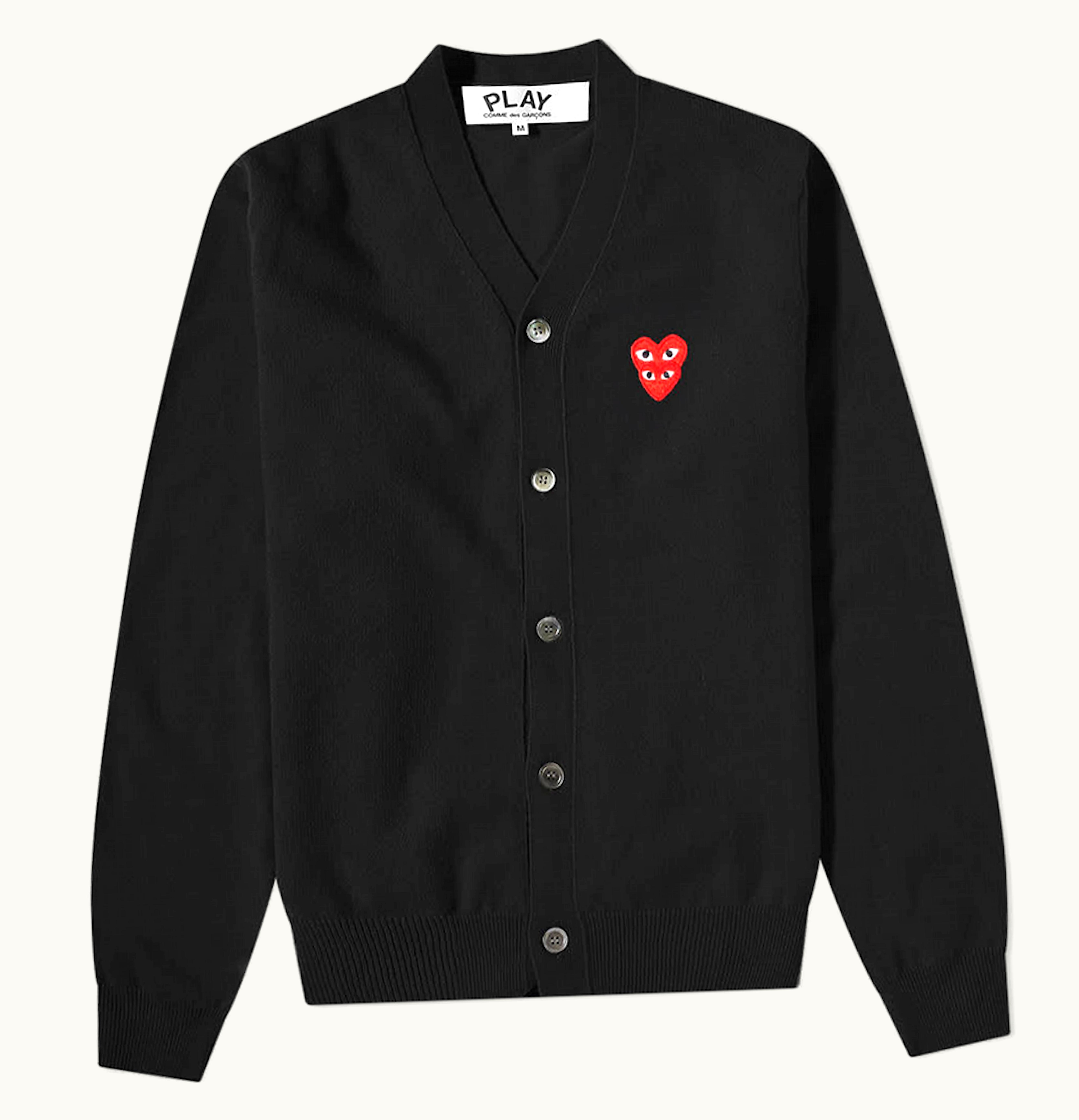 CDG Play Overlapping Heart Cardigan Black Red | GLINT