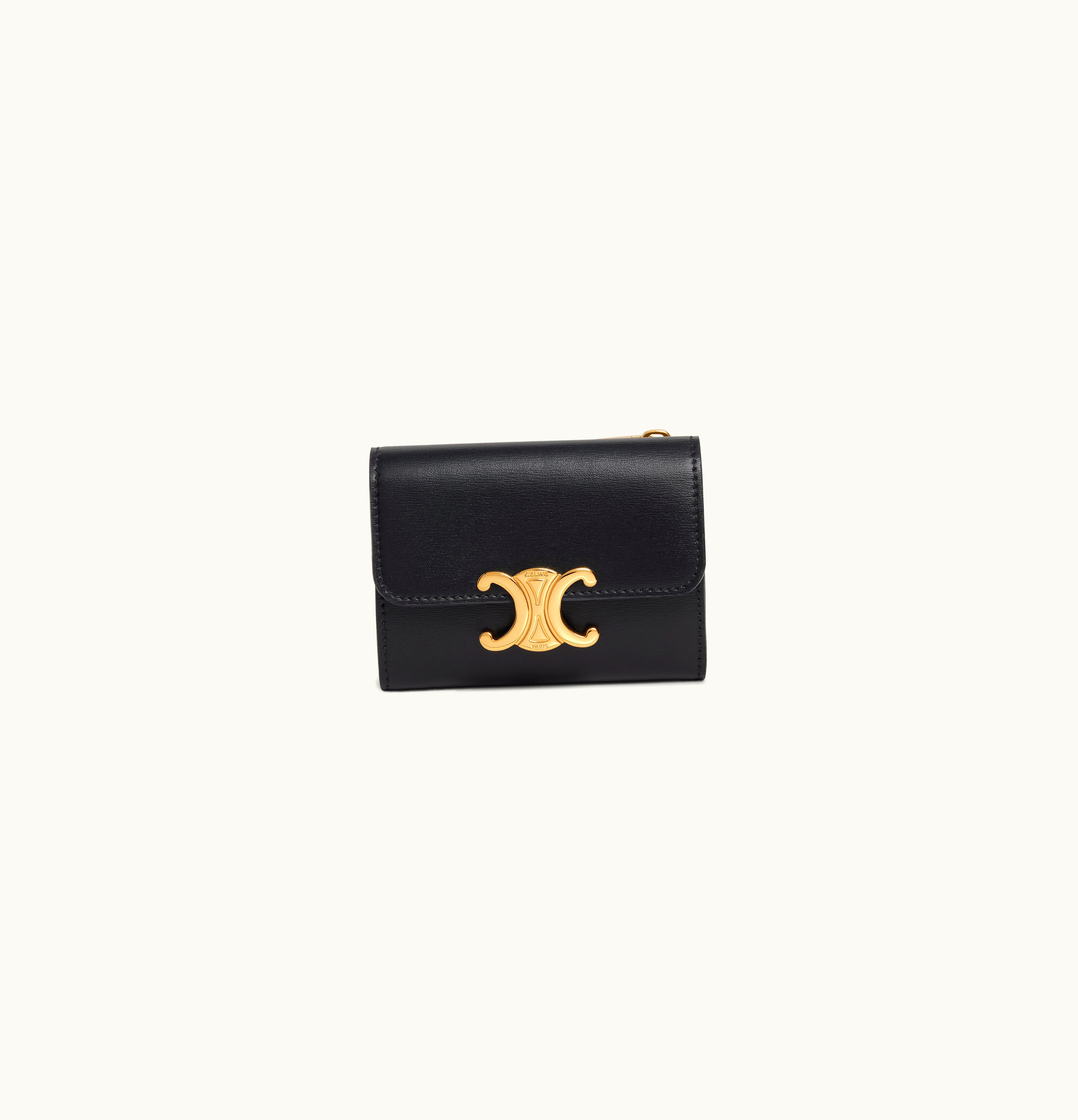 Celine Compact Wallet Triomphe In Shiny Calfskin Black | GLINT
