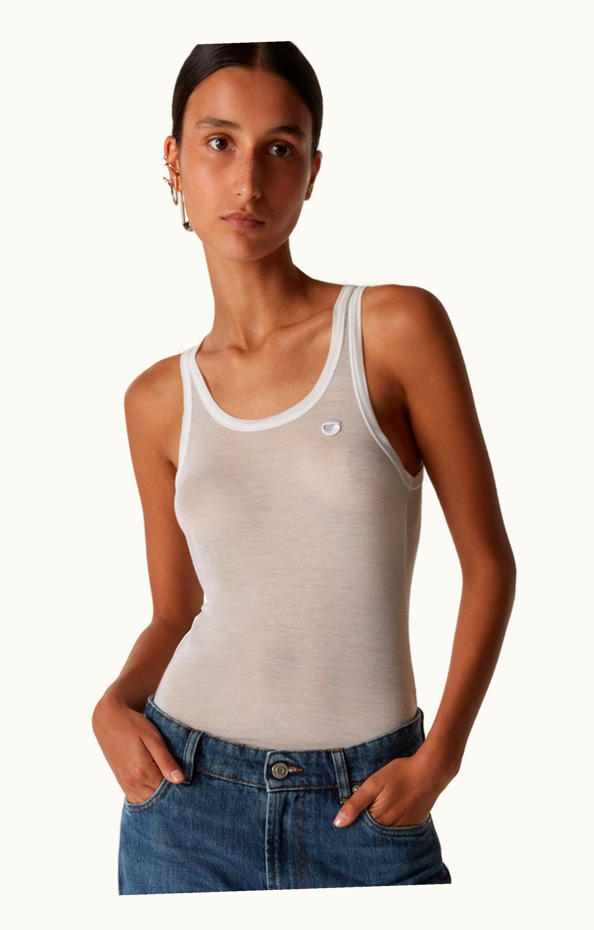 Coperni Sheer Jersey Logo Tank Top White | GLINT
