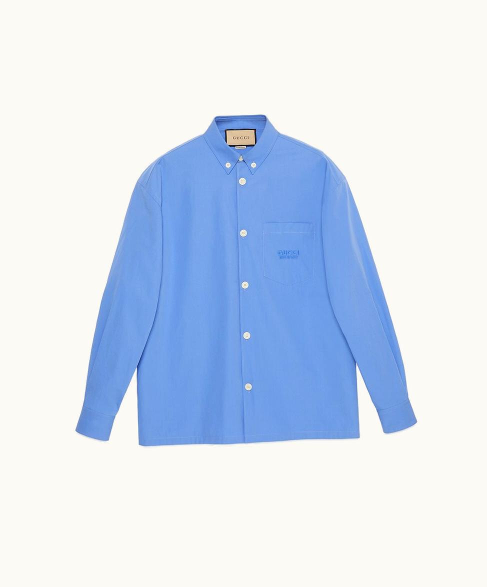 Cotton Shirt With Gucci Embroidery Blue | GLINT