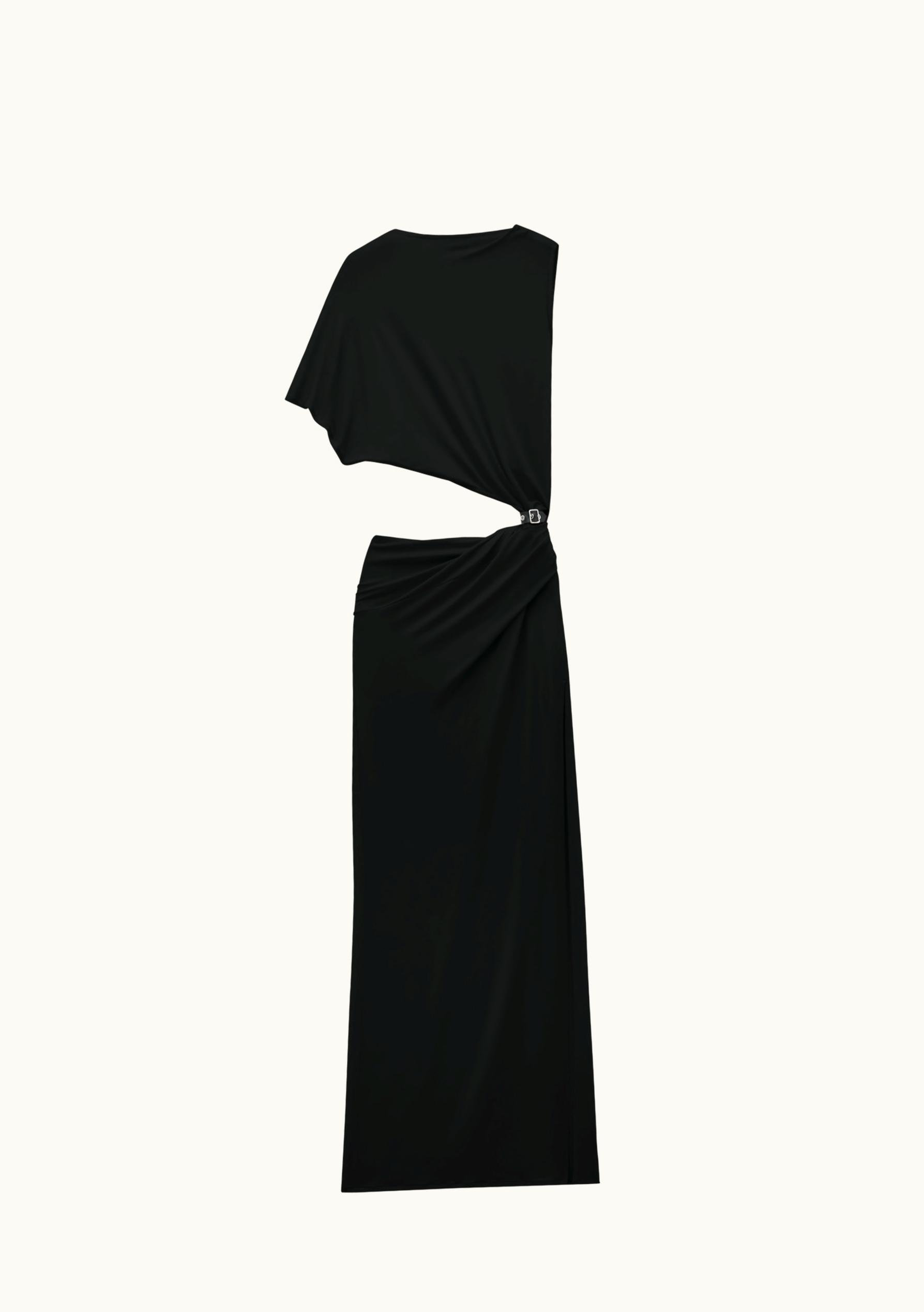 Courrèges One Shoulder Black Crepe Jersey Long Dress | GLINT