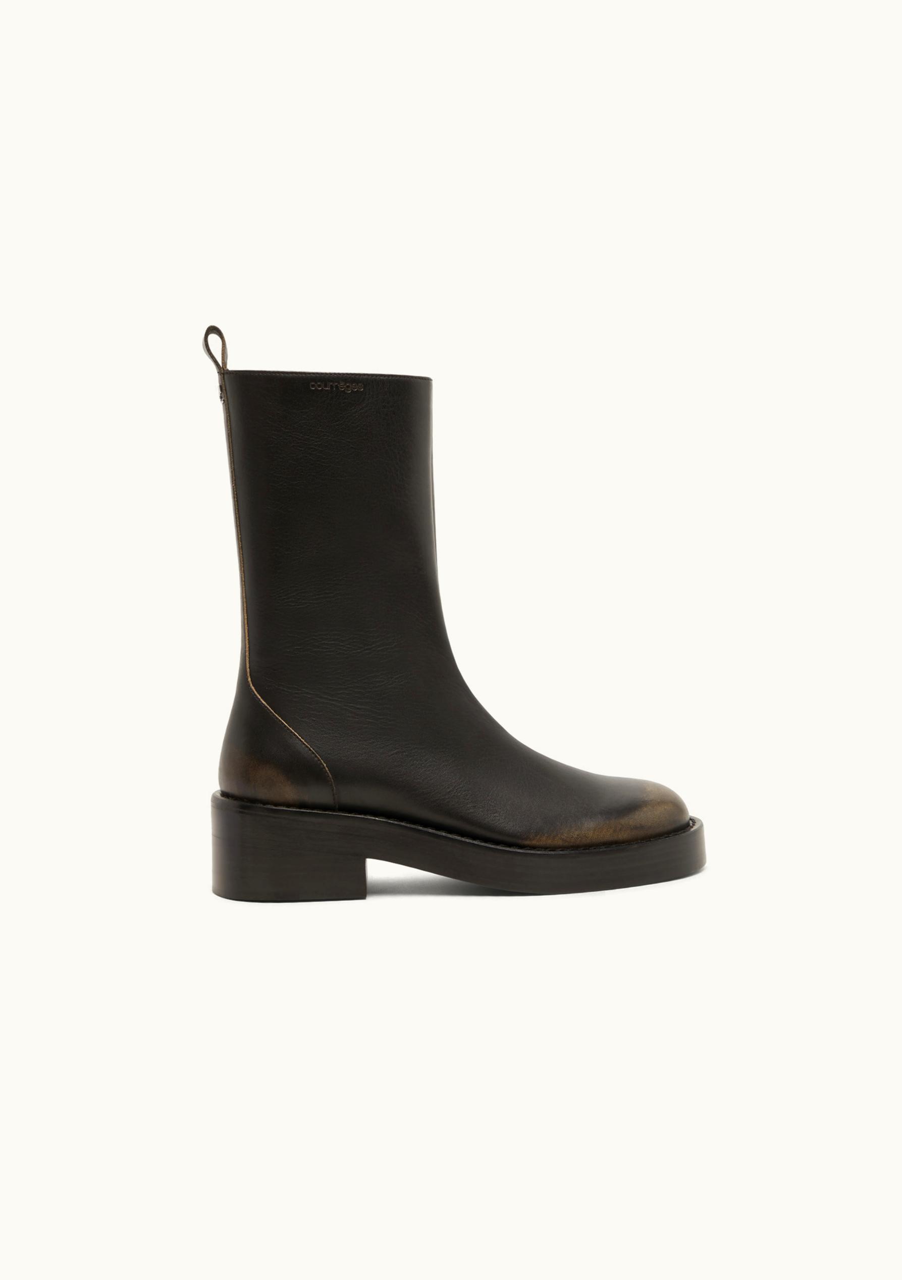 Courrèges Rider Patina Calf Leather Moto Boots Black | GLINT