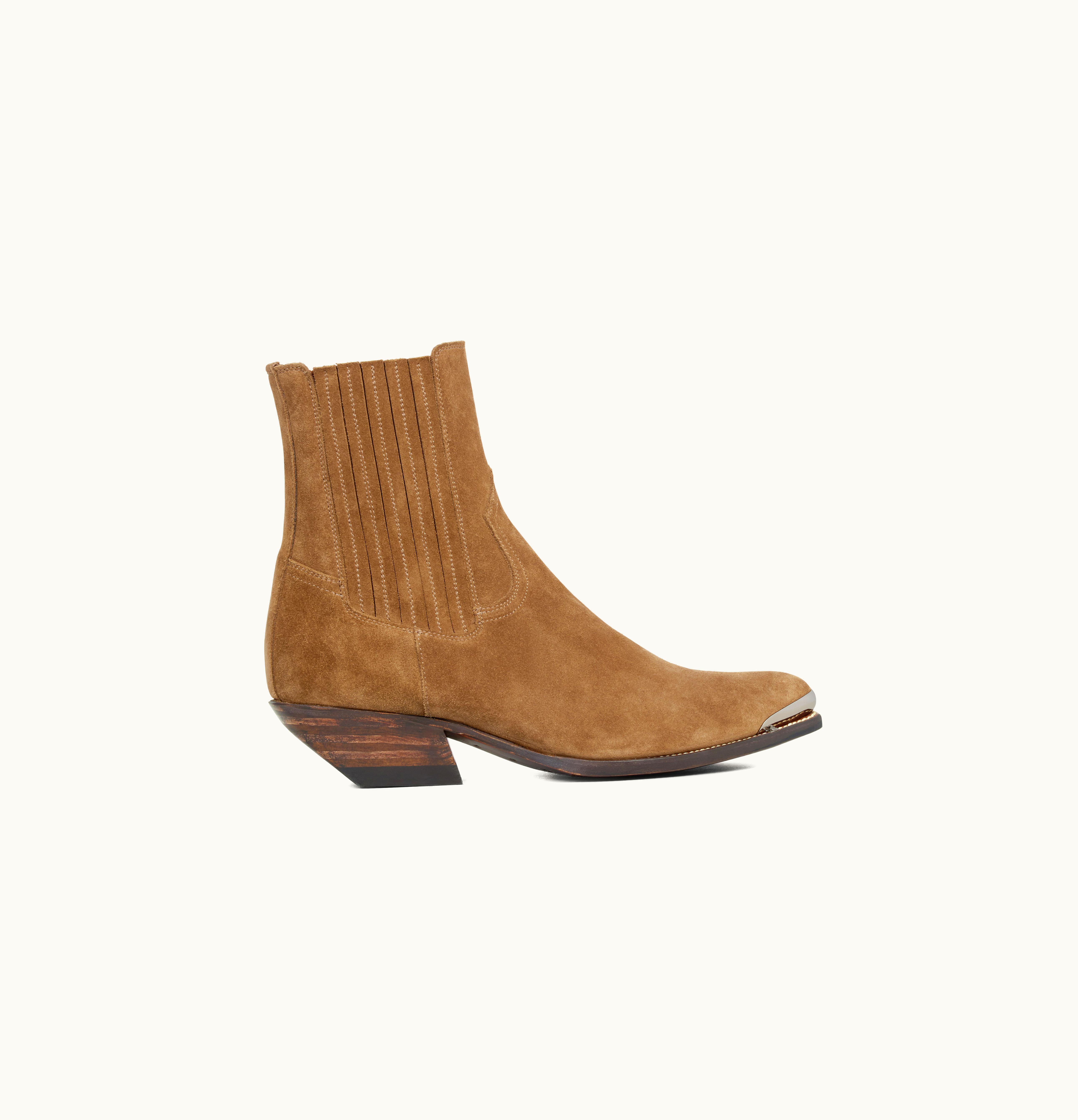 Celine Cruiser Boots Chelsea Boot With Metal Toe In Suede Calfskin Havana | GLINT