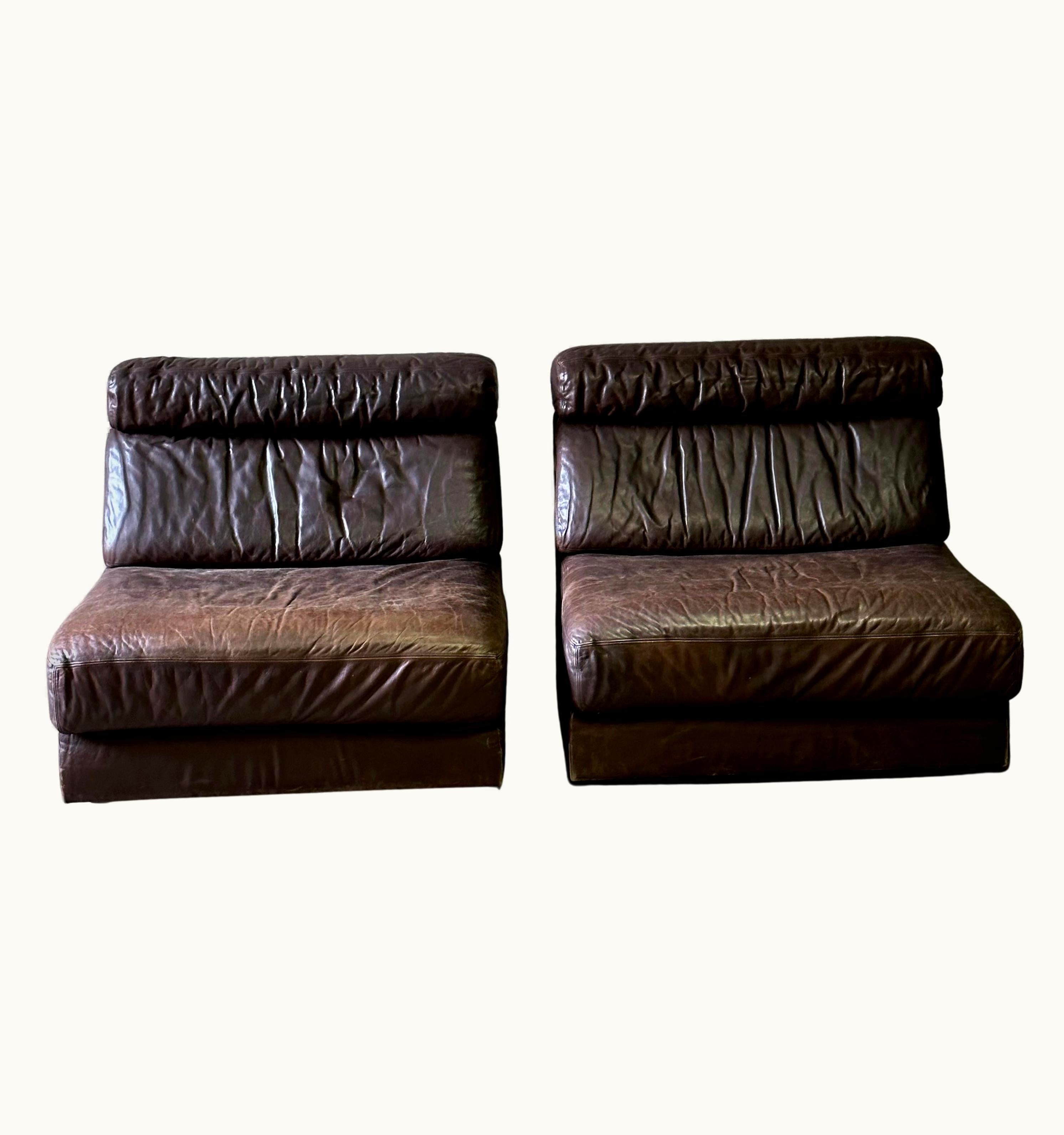 De Sede Pair Of Leather De Sede Extending Lounge Chairs | GLINT