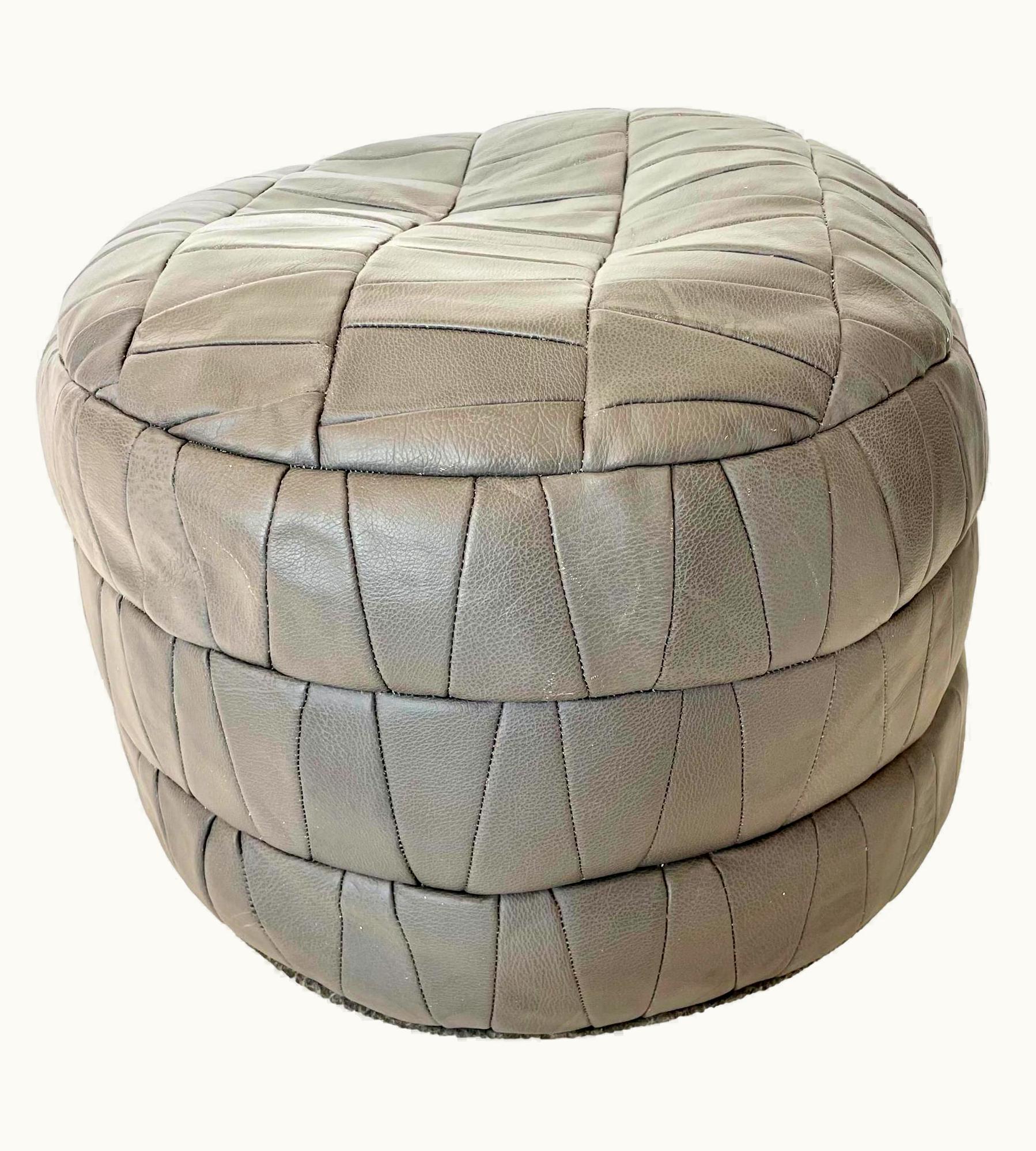 De Sede Patchwork Grey Leather Pouf | GLINT