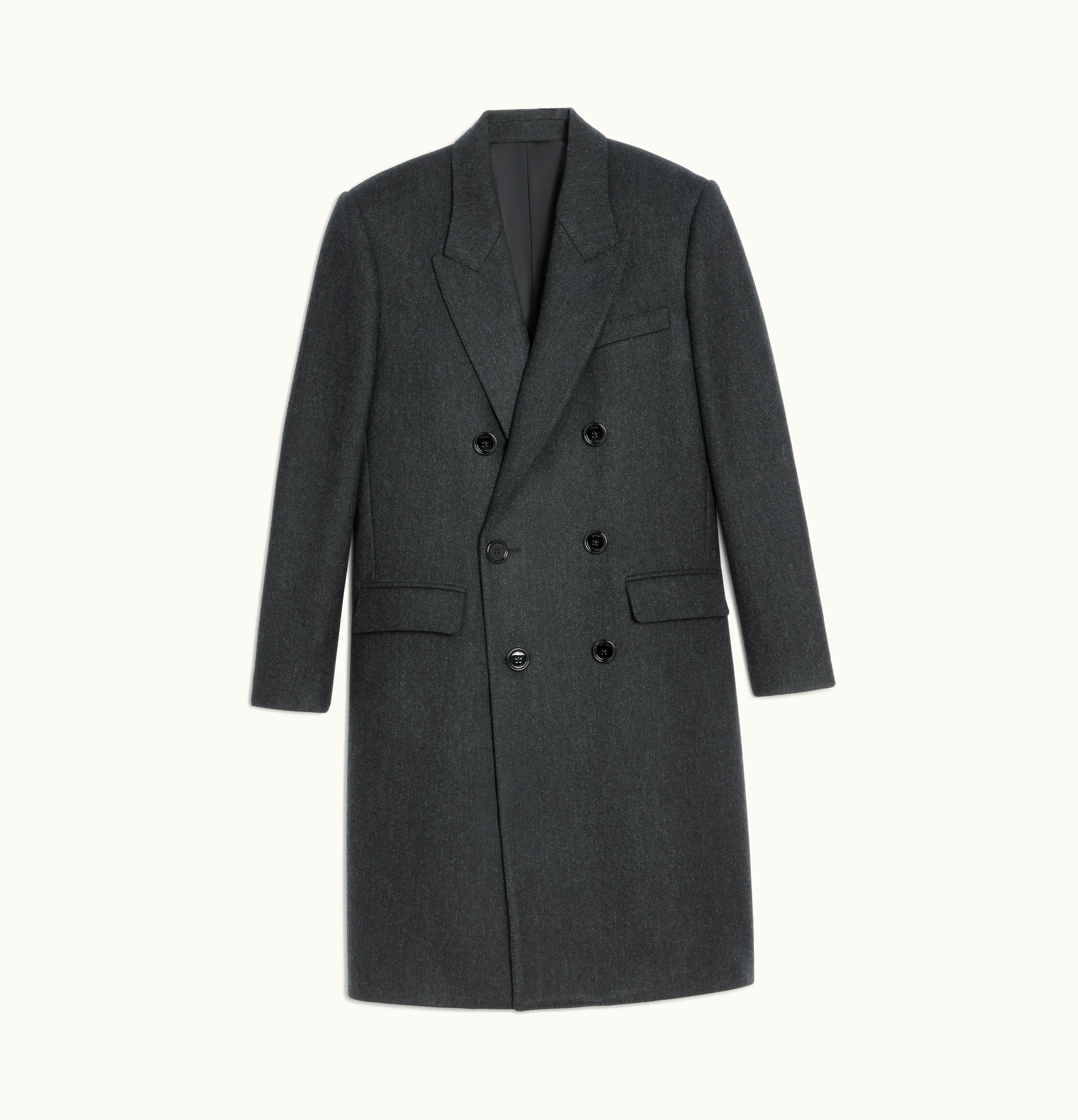 Celine Diagonal Wool Overcoat Charcoal | GLINT