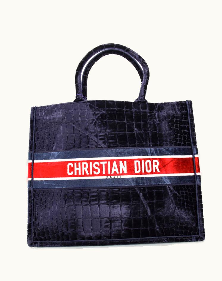 Dior Book Tote Cannage Embroidered Velvet Large Blue Luxury Handbag | GLINT