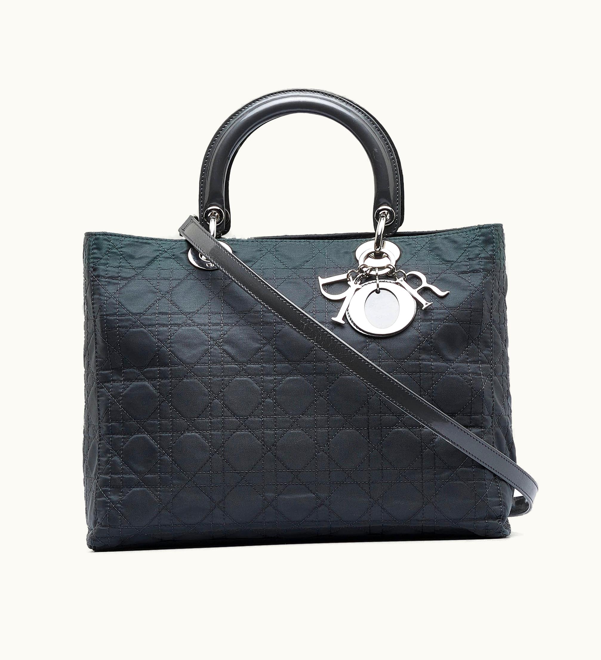 Dior Cannage Lady Satchel Quilted Nylon Black | GLINT