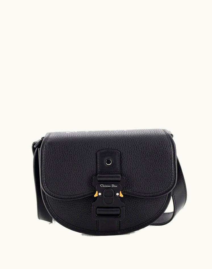 Dior Gallop Flap Messenger Bag Leather Mini Black Gun Metal | GLINT