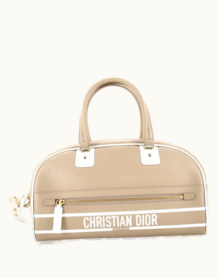 Dior Vibe Zip Bowling Bag Leather Medium Neutral Gold | GLINT