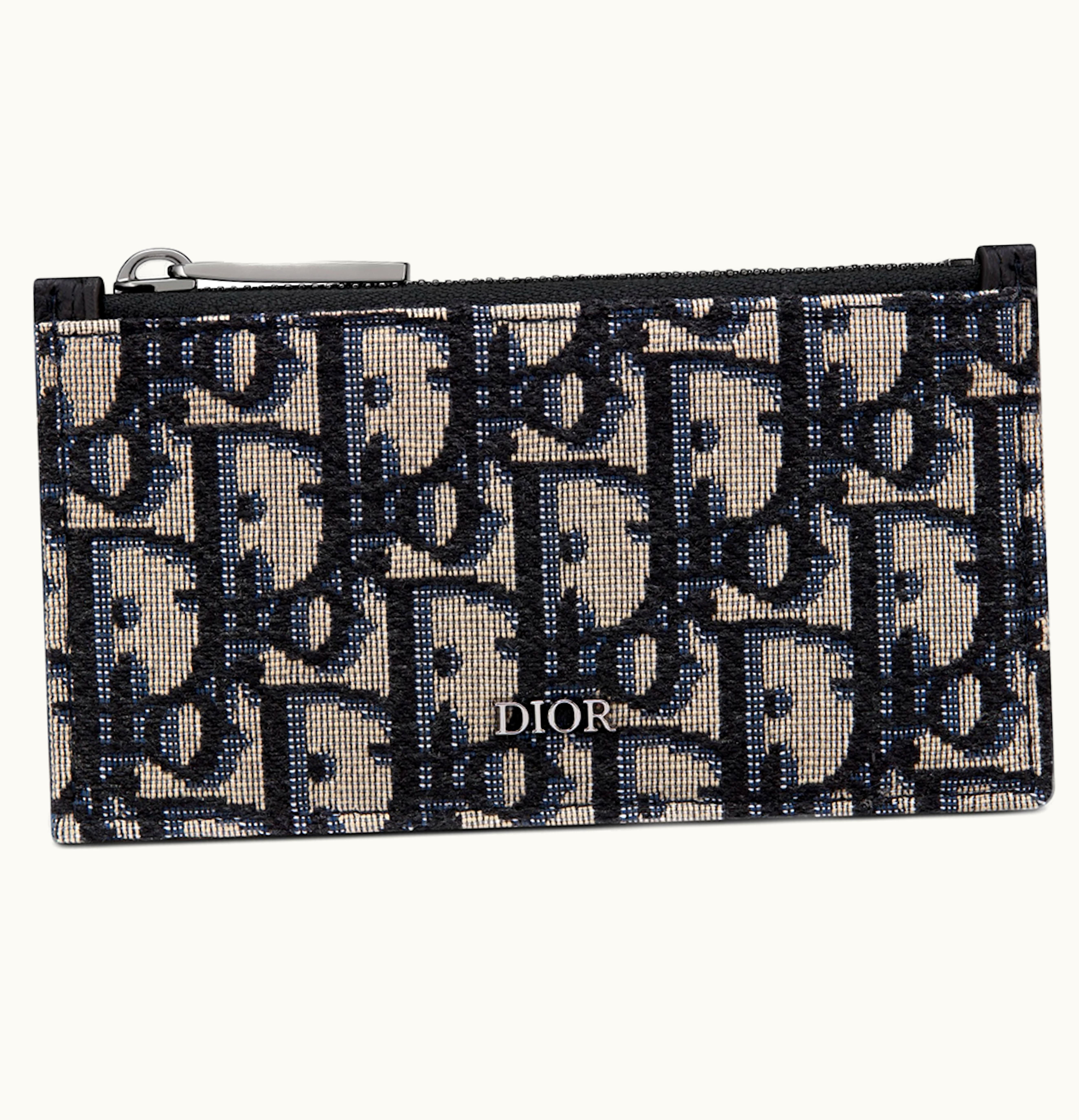 Dior Zipped Card Holder Oblique Jacquard Beige Black | GLINT