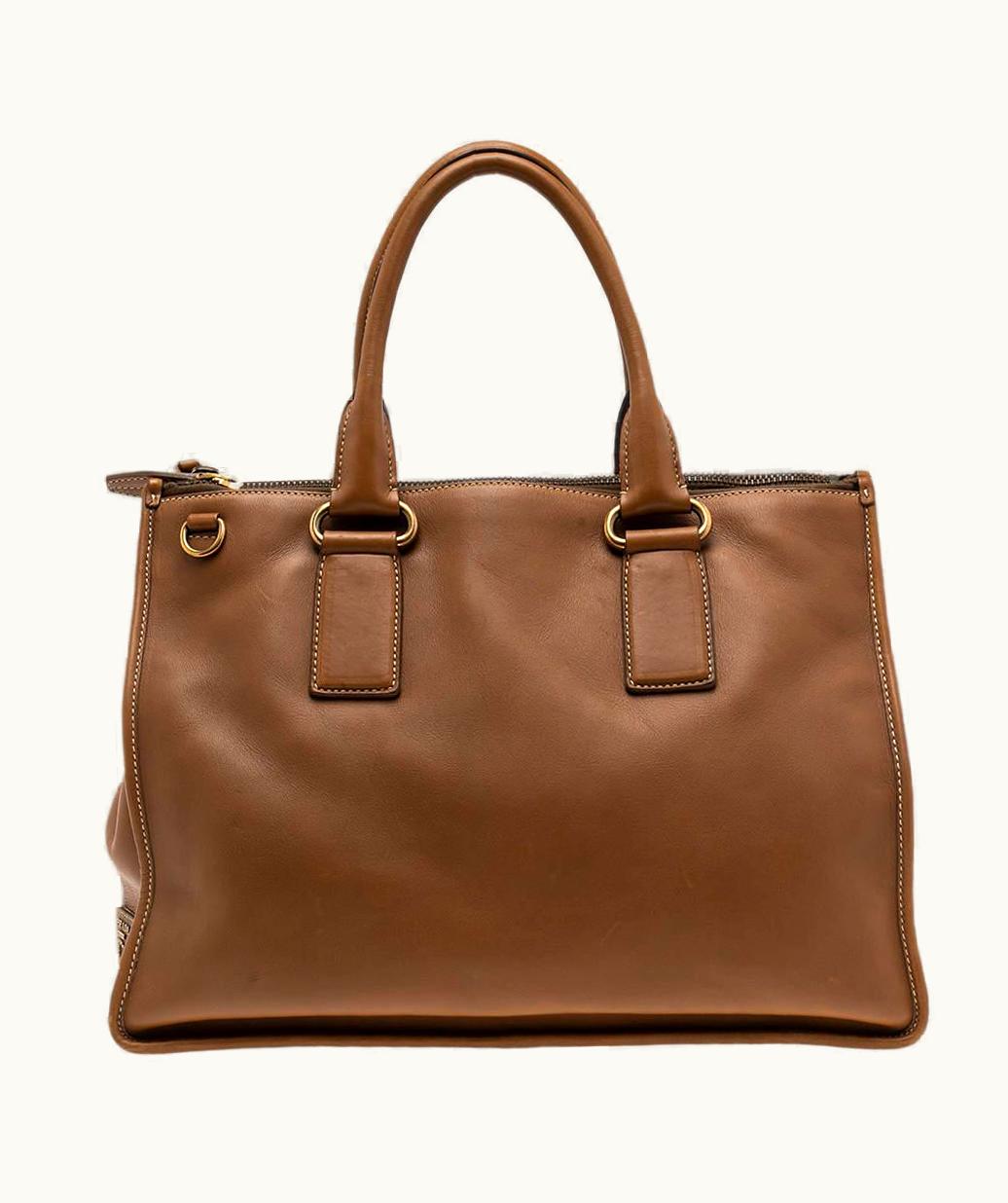 Prada Brown Leather Double Zip Tote UZ0616118 | GLINT