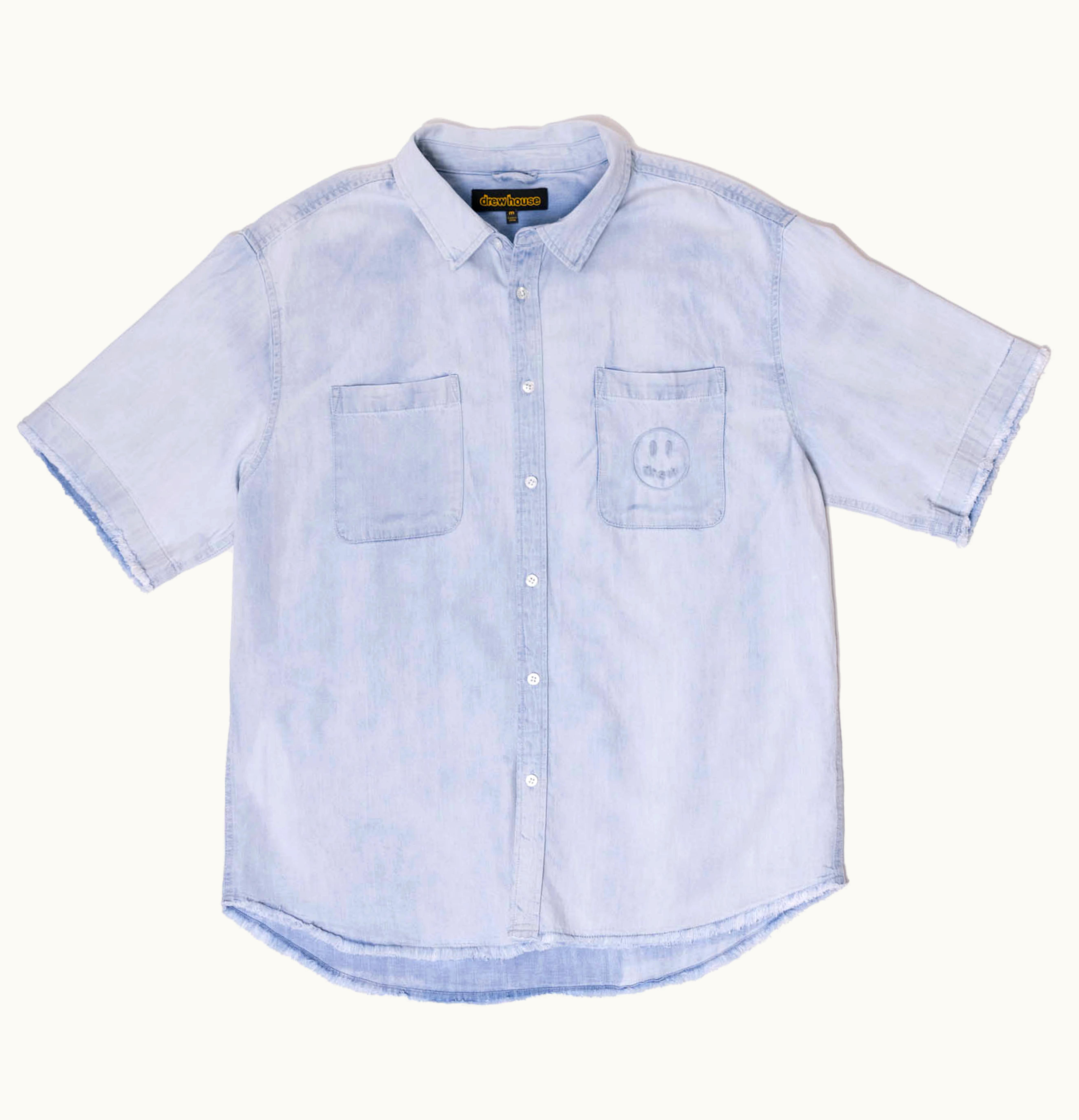 drew house lightweight denim ss shirt light indigo | GLINT