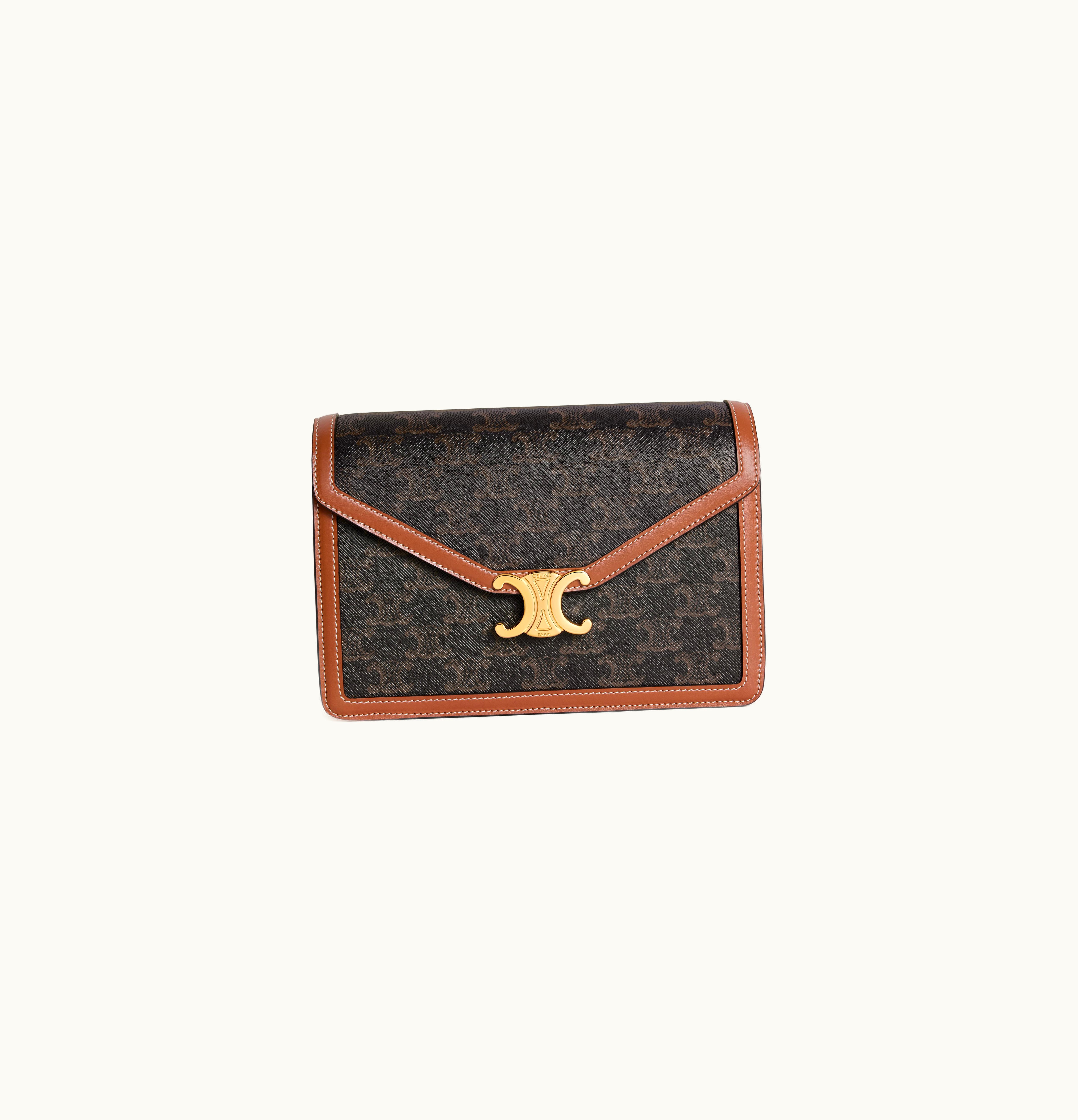 Celine Enveloppe Triomphe Bag In Triomphe Canvas And Calfskin Tan | GLINT