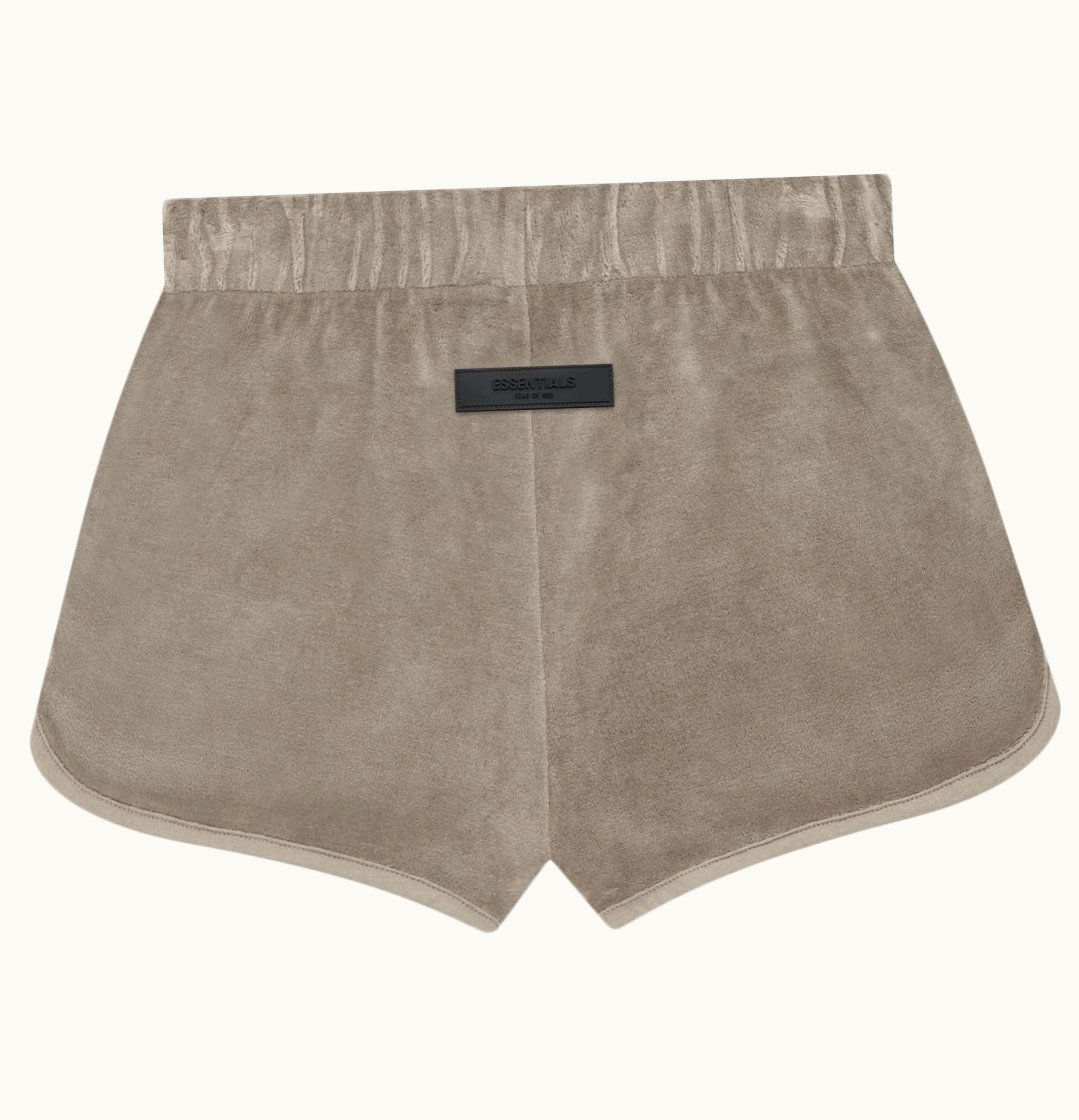 Fear of God Essentials Womens Velour Beach Short Desert Taupe | GLINT