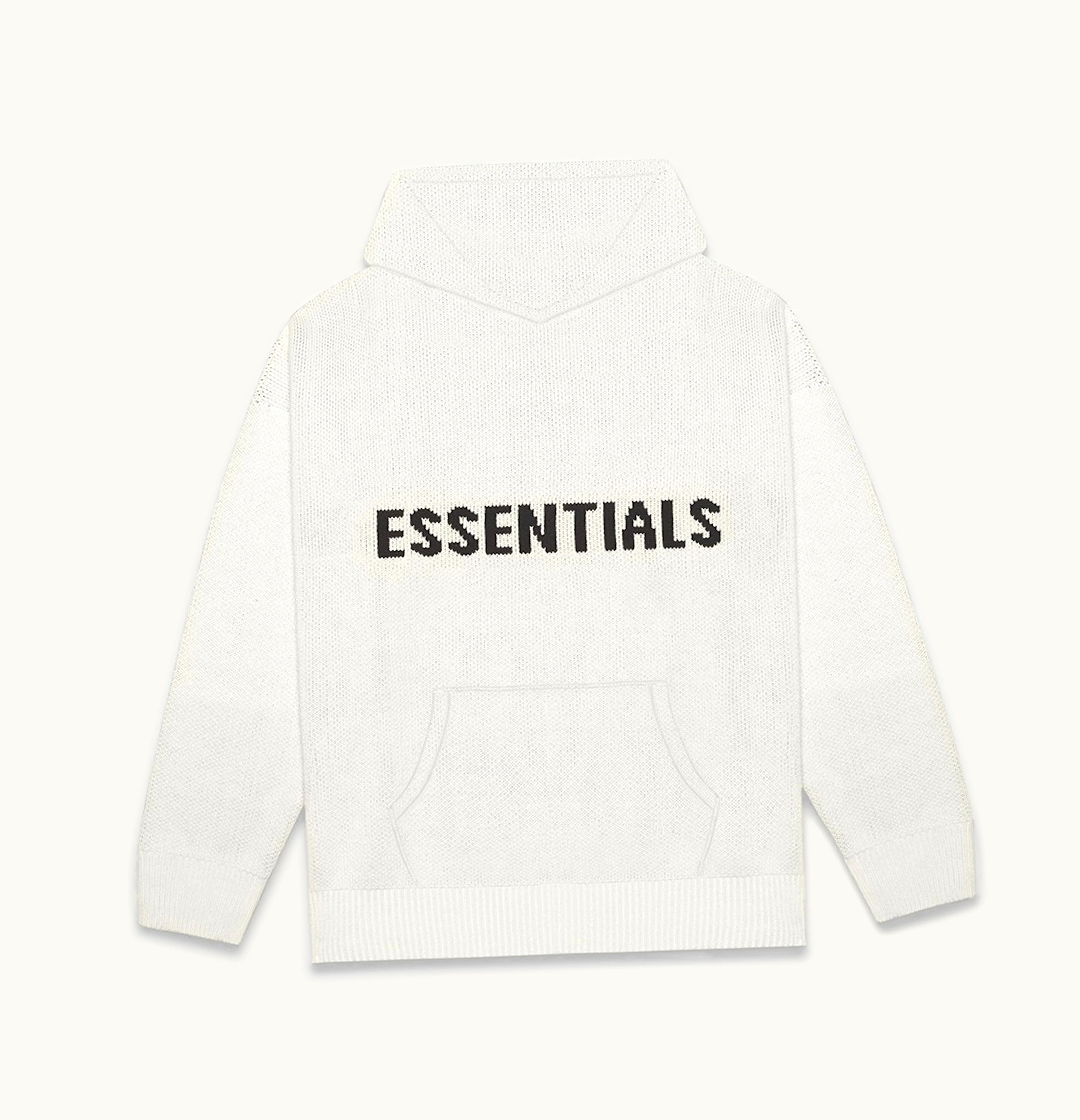 FEAR OF GOD ESSENTIALS Knit Hoodie Light Heather Oatmeal | GLINT
