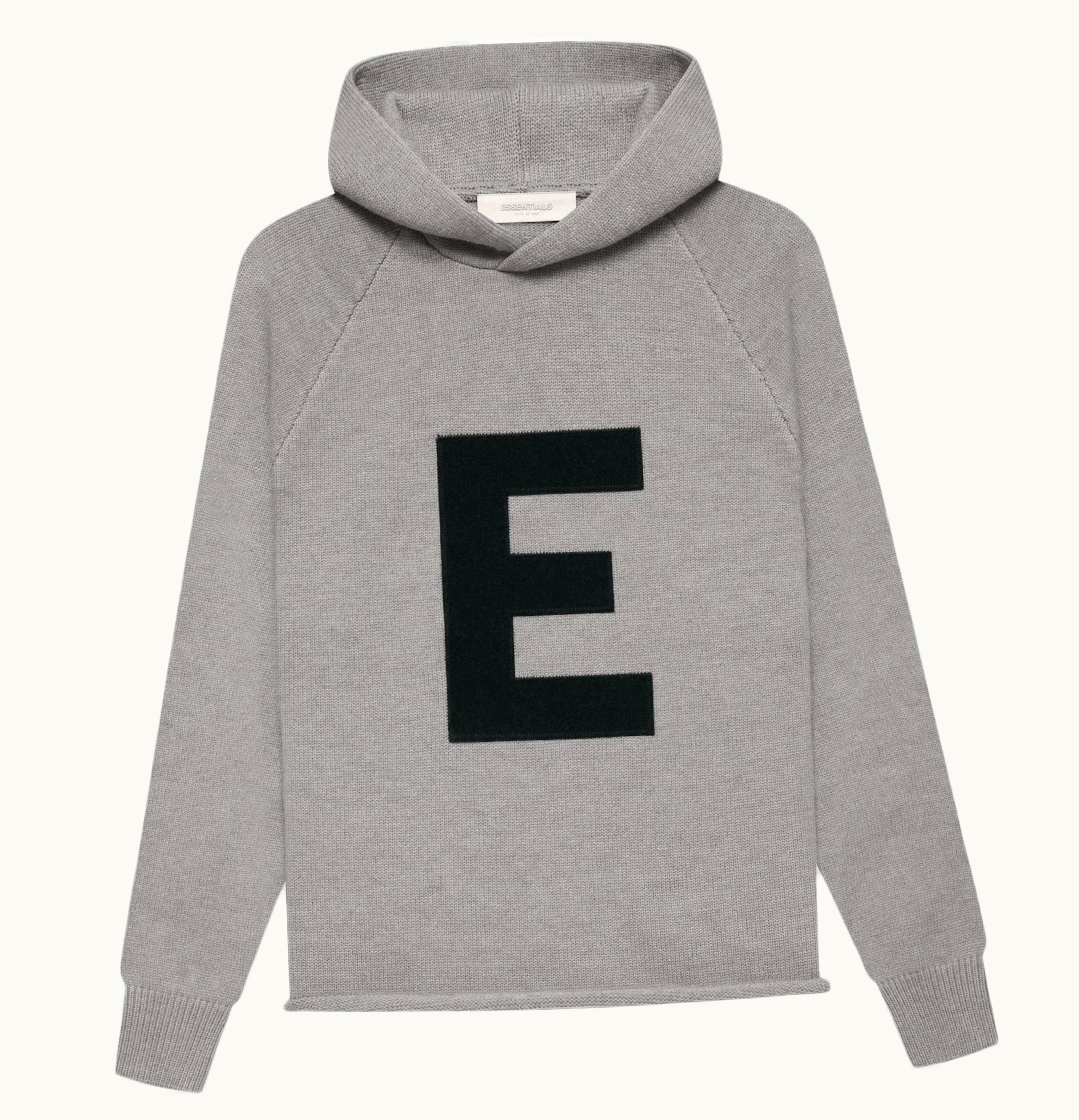 Fear of God Essentials Kids Big E Knit Hoodie Dark Oatmeal | GLINT