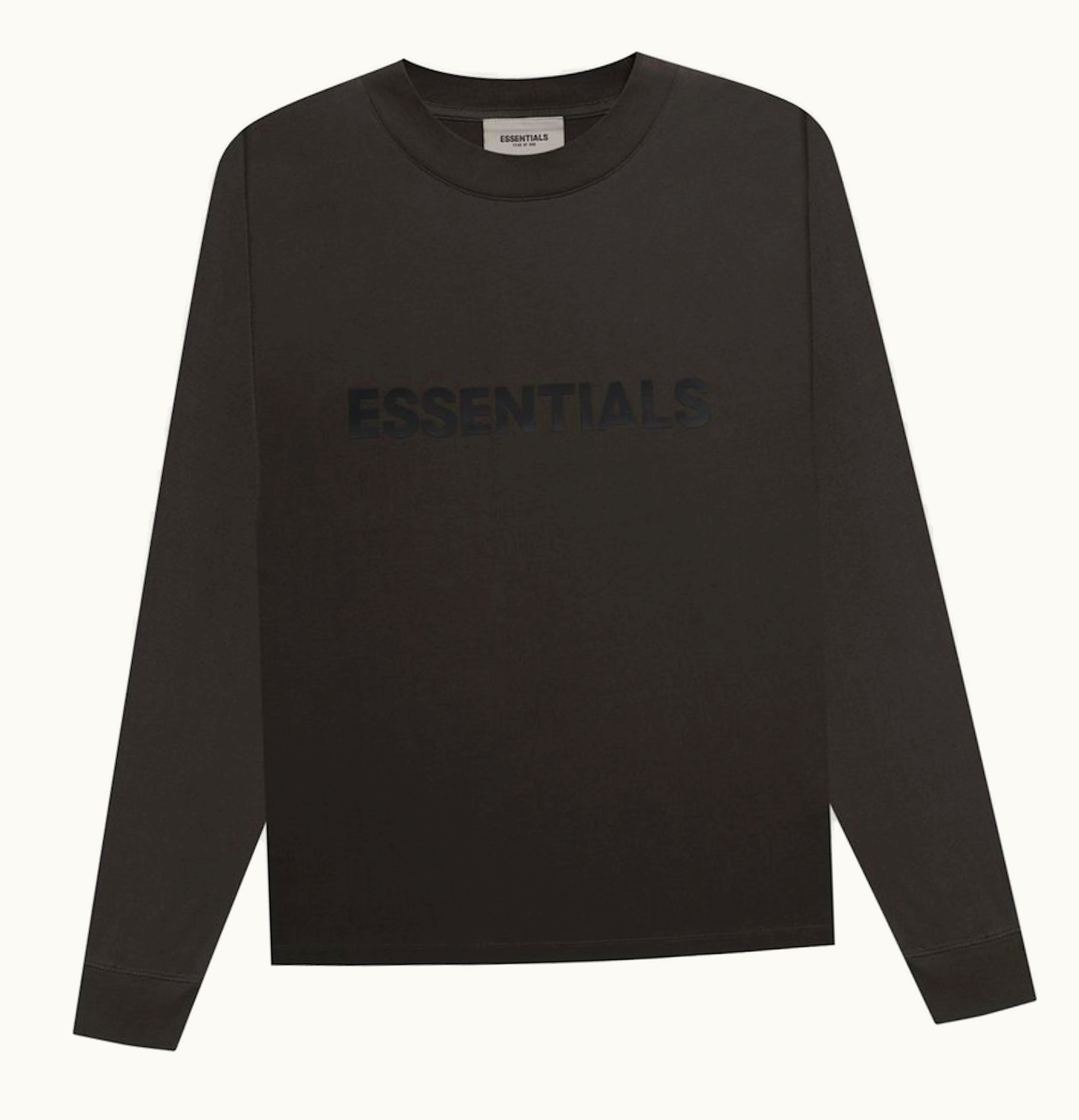 FEAR OF GOD ESSENTIALS 3D Silicon Applique Boxy Long Sleeve T Shirt Weathered Black | GLINT