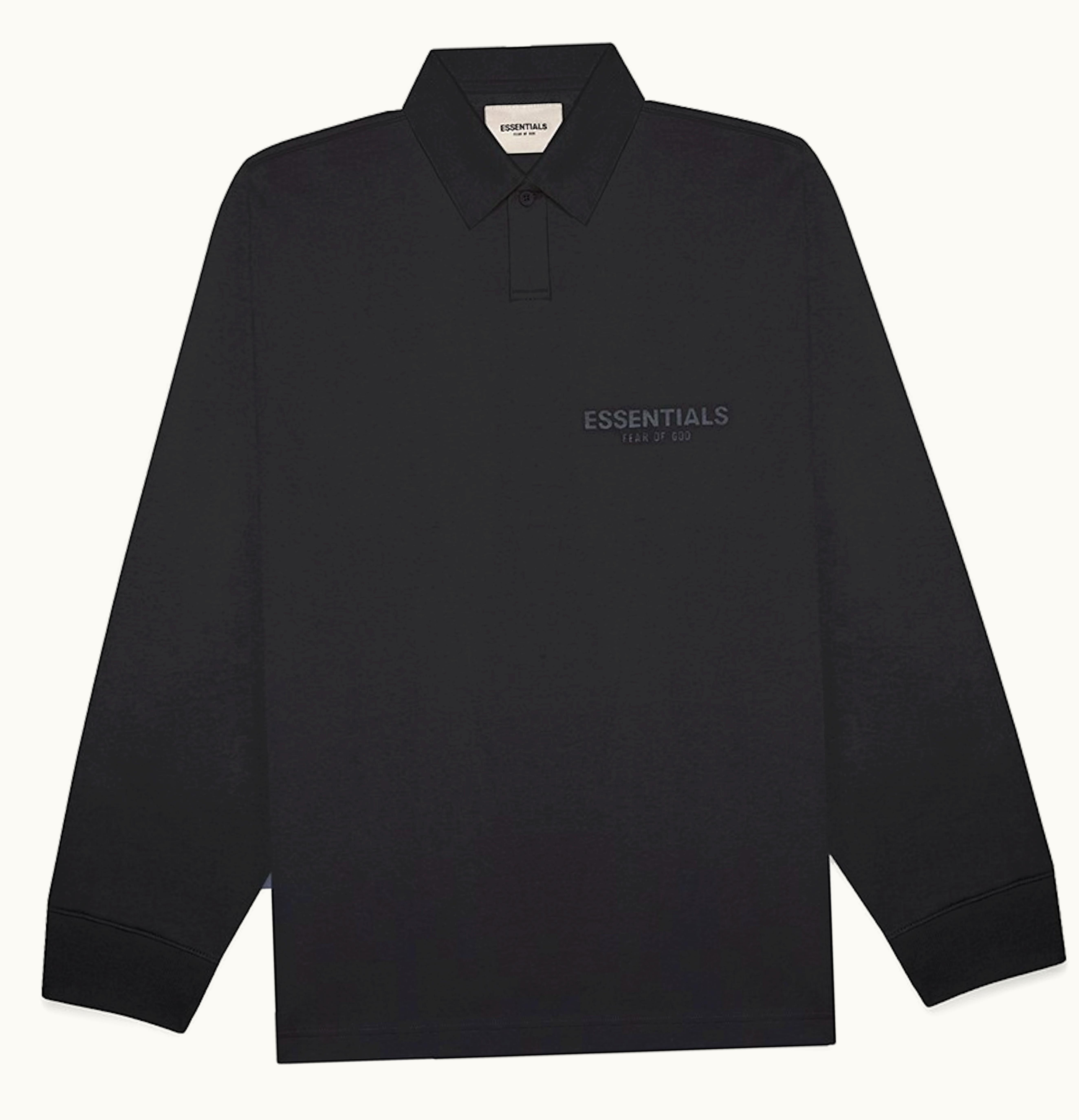 FEAR OF GOD ESSENTIALS Long Sleeve Boxy Polo Dark Slate Stretch Limo Black | GLINT