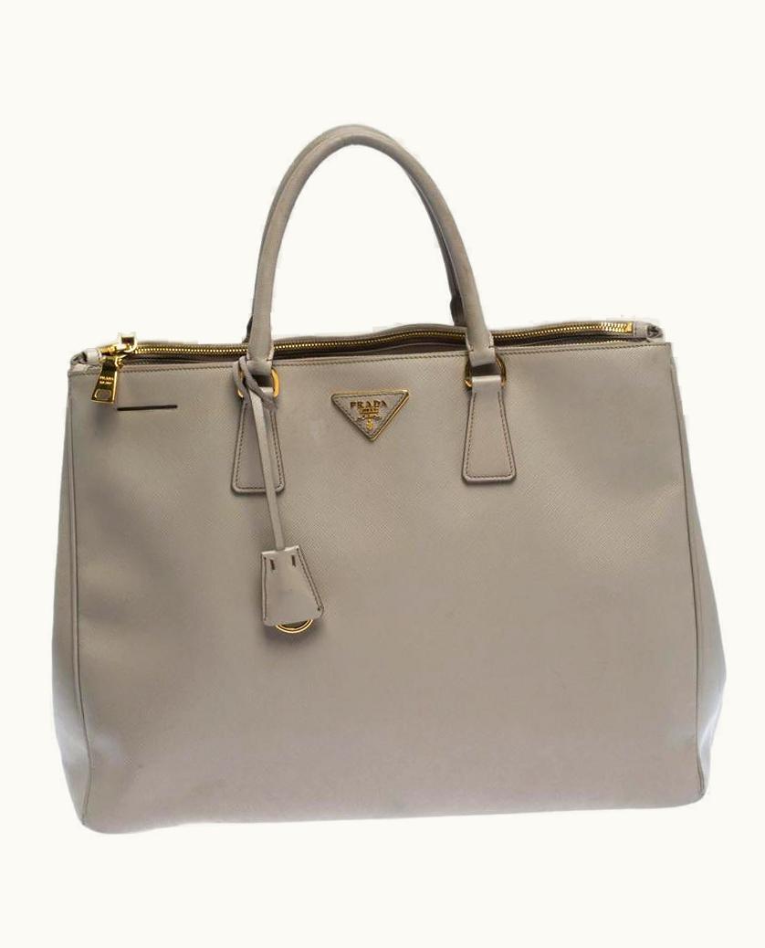 Prada Beige Leather Executive Double Zip Tote | GLINT