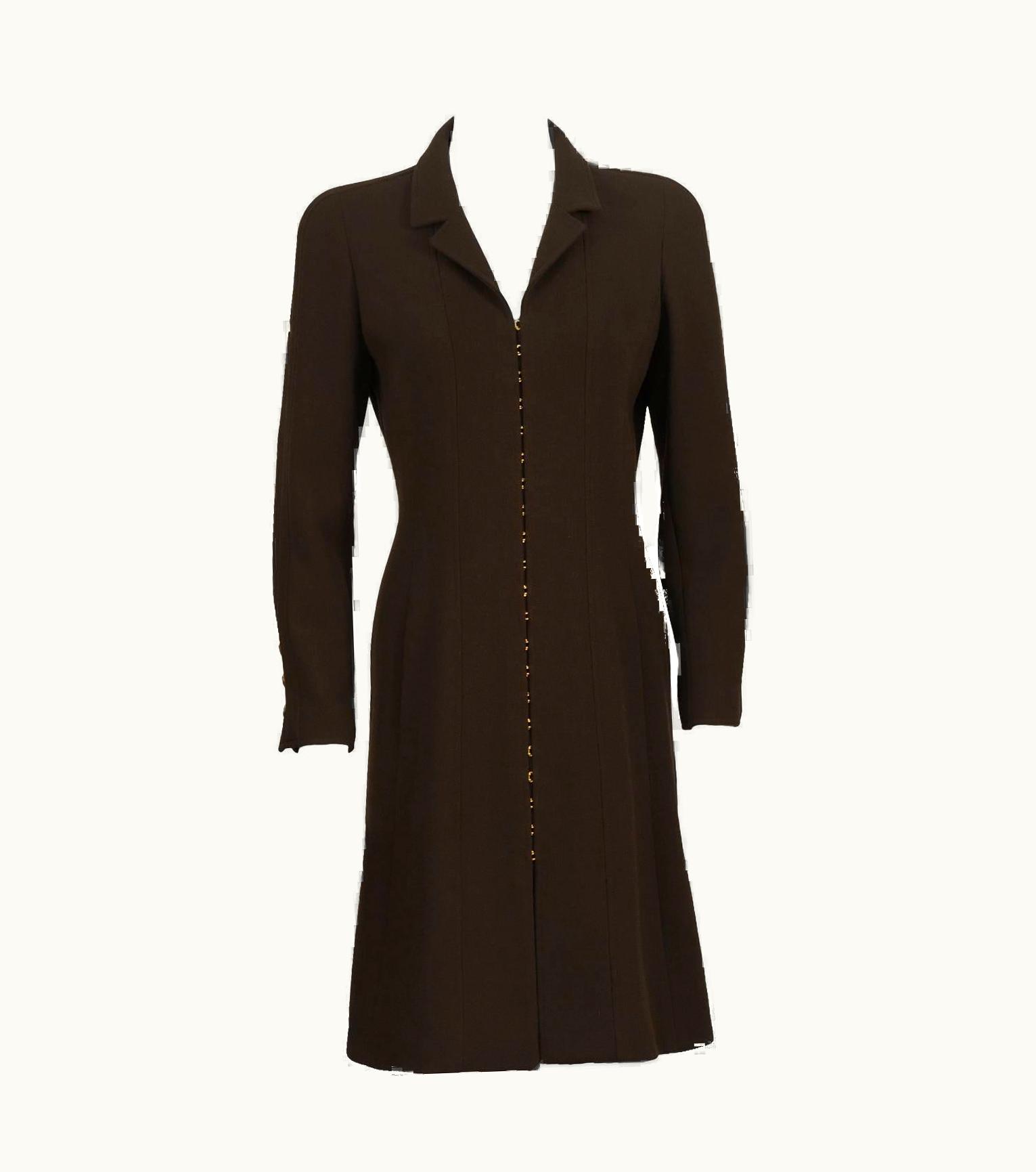 Fall 1996 Chanel Brown Wool Coat Dress | GLINT