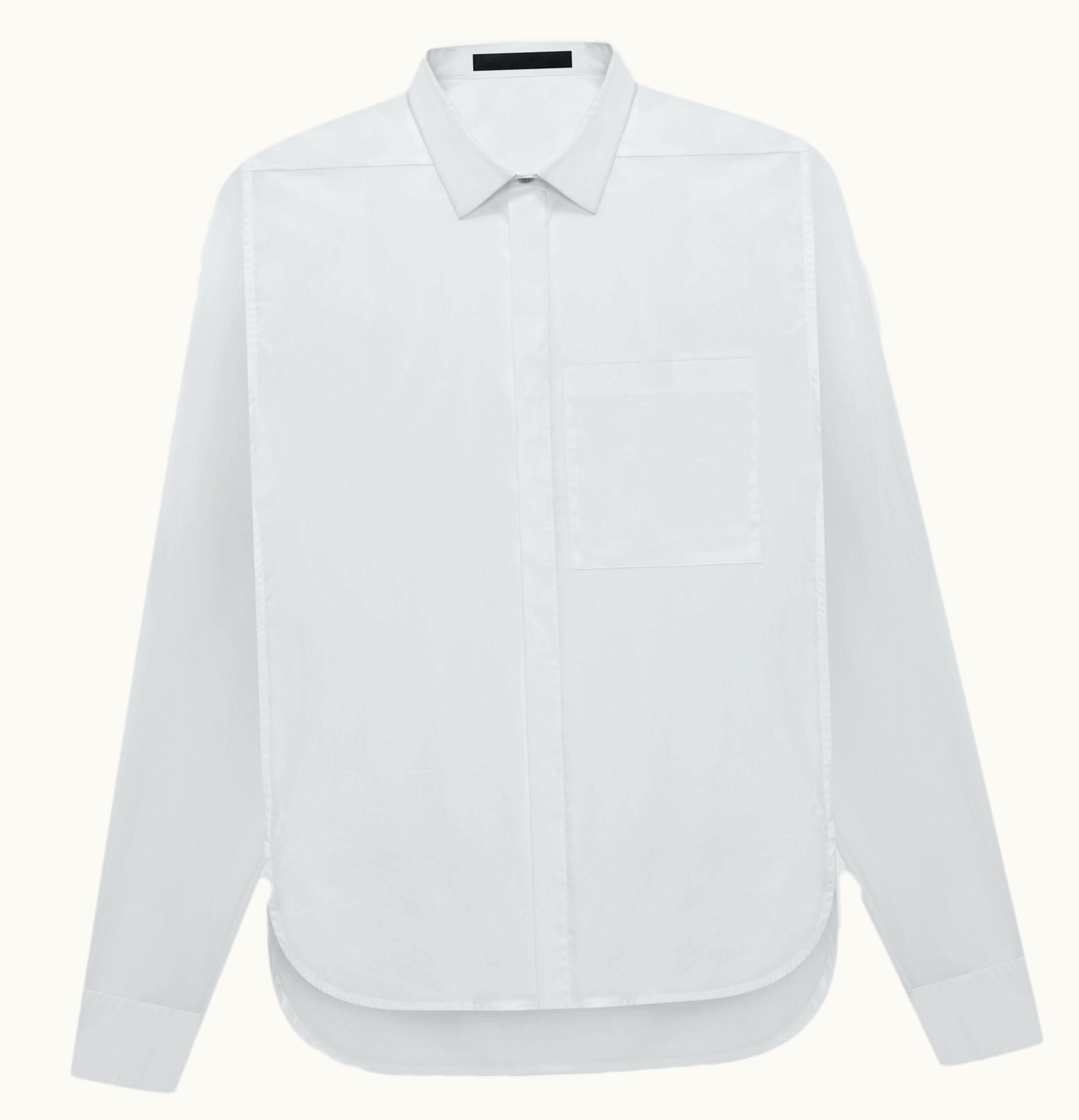 The Fear of God Seventh Collection Easy Collared shirt is a contemporary take on the classic collared shirt. With its relaxed fit, this shirt comes in a light blue color and is made from 100% cotton. The shirt features a pointed collar and a full button front. The sleeves are long and cuffed, adding a touch of sophistication to the overall design. The back of the shirt has a unique design with a box pleat and side seam detailing, giving the shirt a bit of edge. This shirt is versatile and can be dressed up or down, perfect for any occasion.