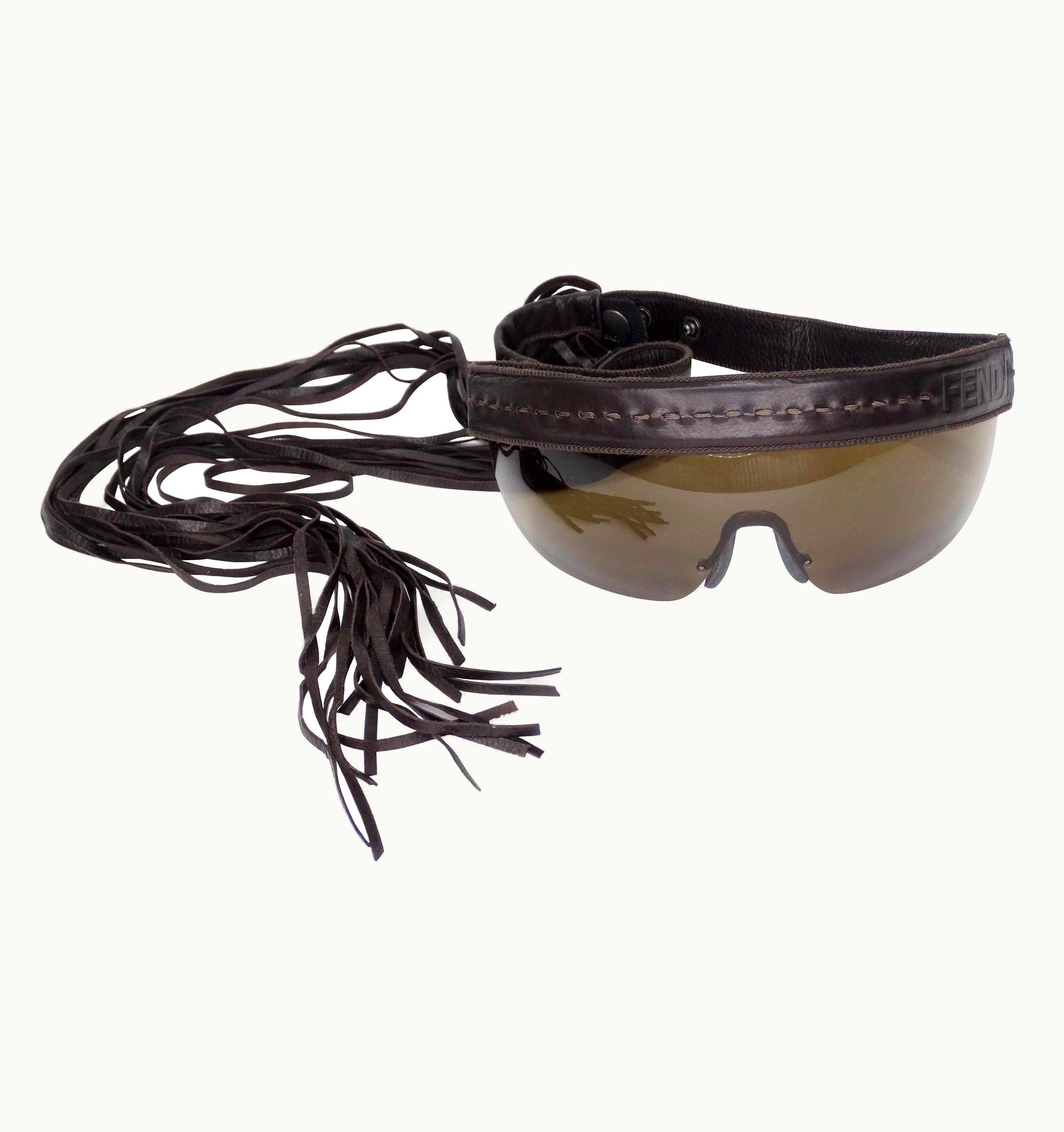 Fendi 1990s Leather Fringe Shield Sunglasses | GLINT