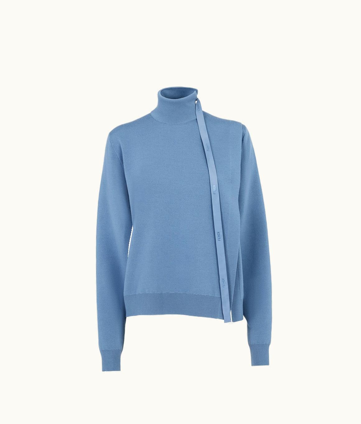 Fendi Asymmetry Blue Wool Sweater | GLINT