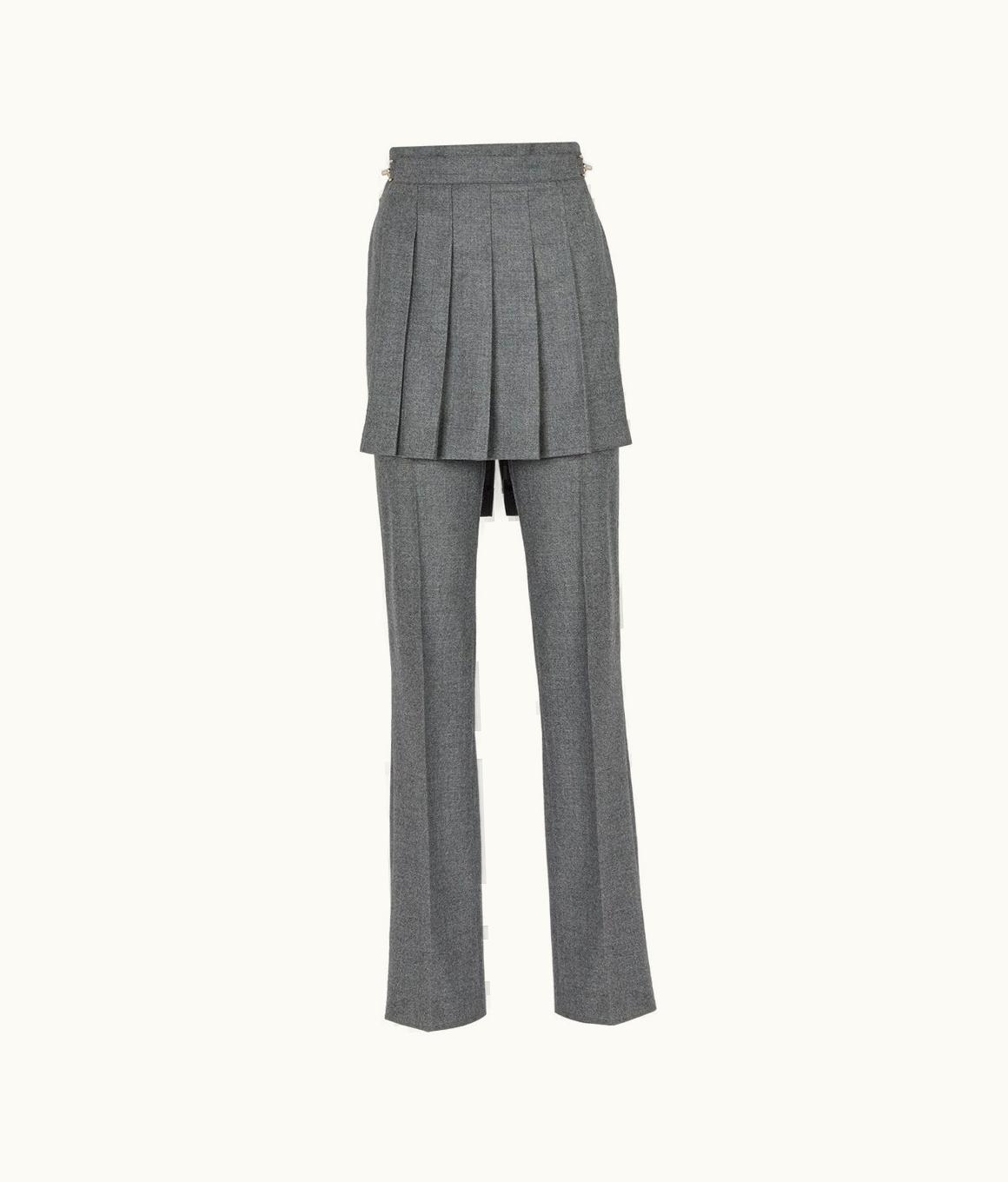 Fendi Asymmetry Wool Flannel Tailored Trousers Gray | GLINT