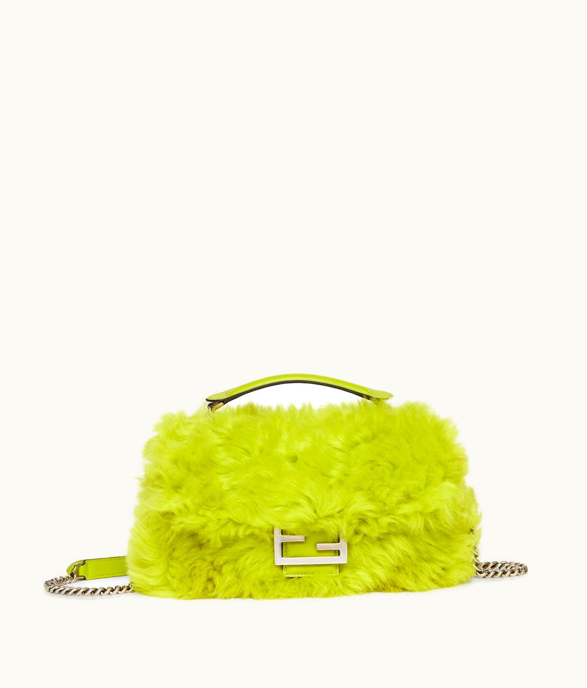 Fendi Baguette Chain Midi - Acid Green Sheepskin Bag | GLINT
