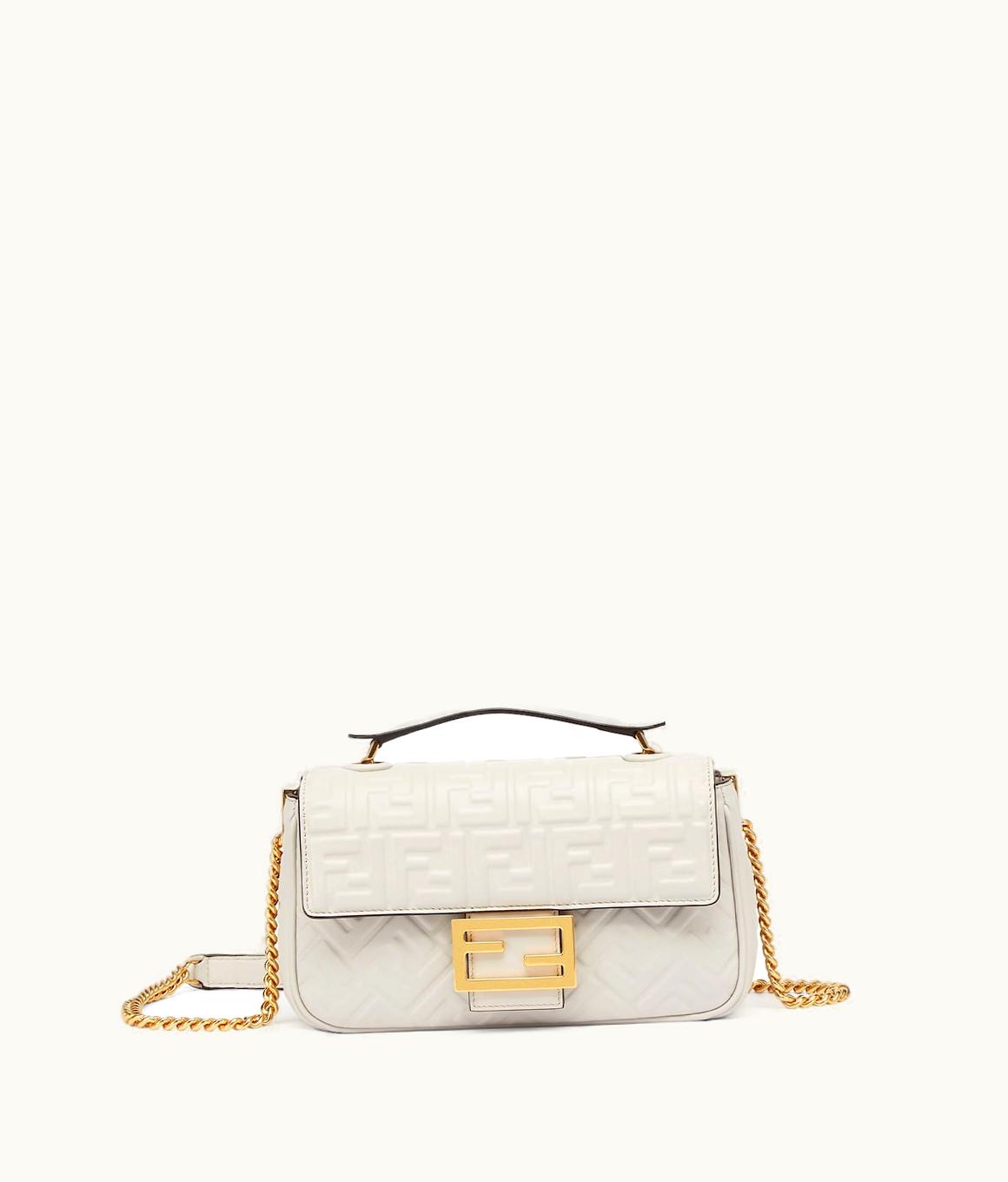 Fendi Baguette Chain Midi - Light Grey Leather Bag | GLINT