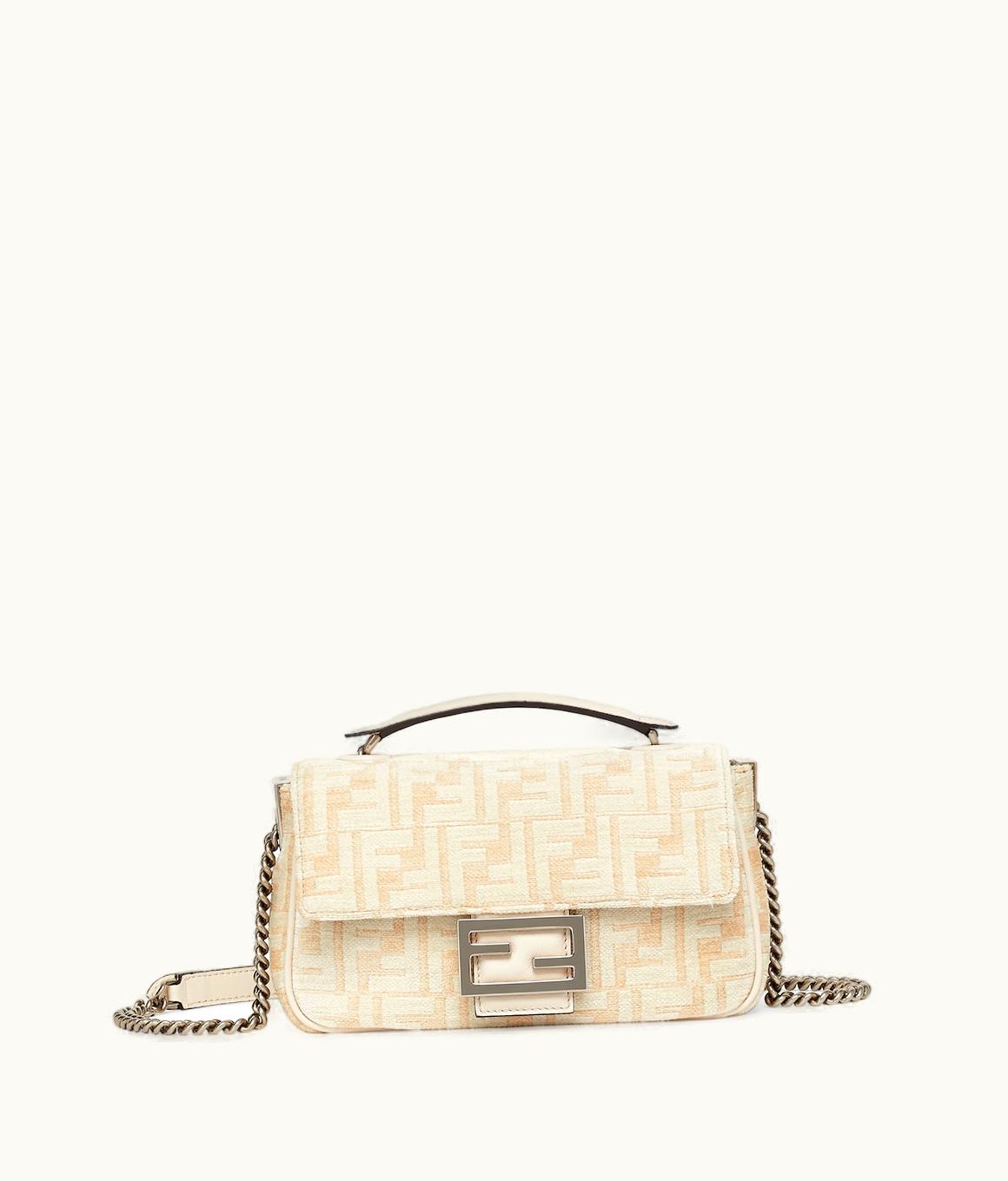 Fendi Baguette Chain Midi - White FF Tapestry Fabric Bag | GLINT