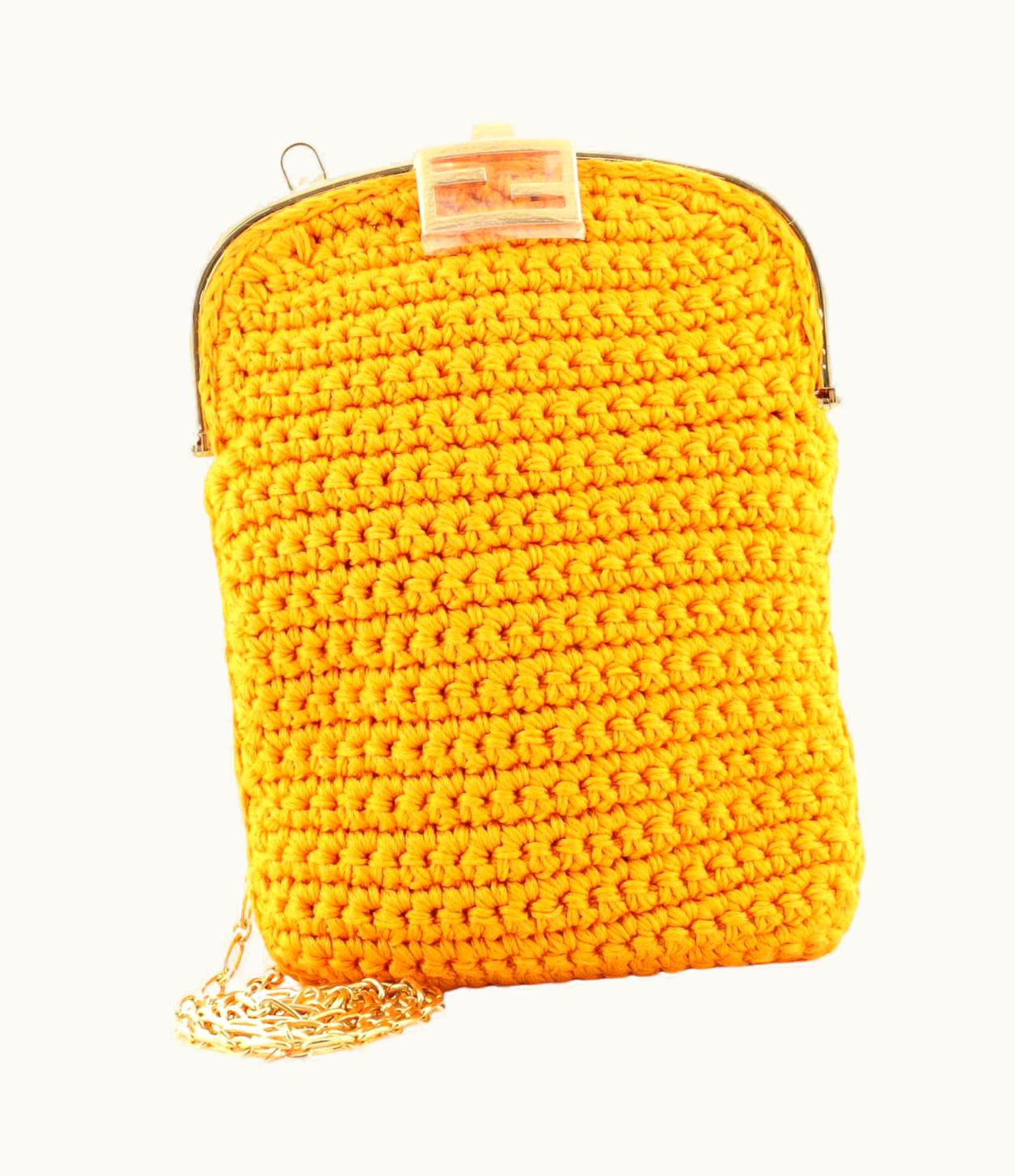 Fendi Baguette Phone Bag Woven Crochet Mini GLINT 166997/139 Orange Textile Gold Hardware | GLINT