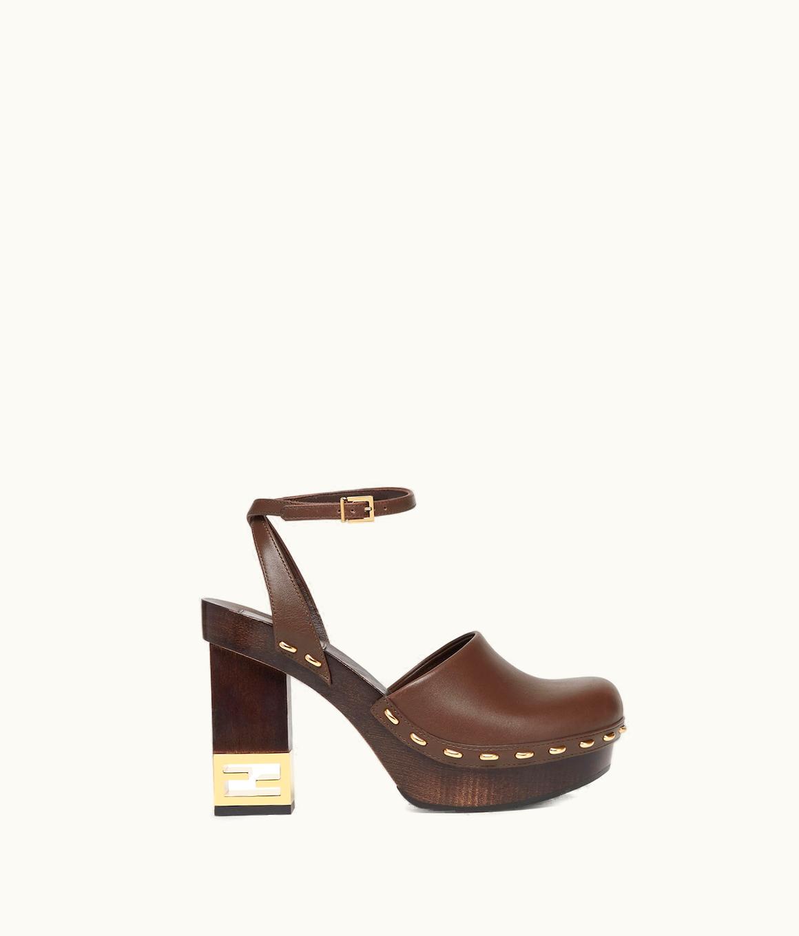Fendi Baguette Show - Brown Leather High-Heeled Clogs | GLINT