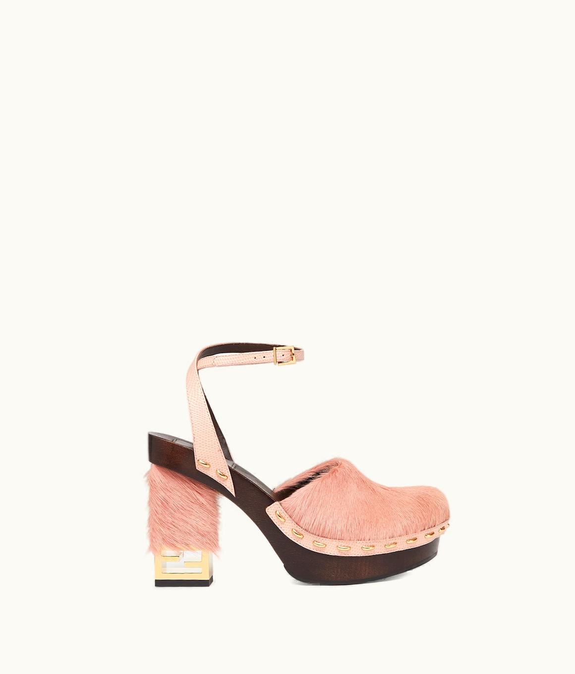 Fendi Baguette Show - Pink Pony Hair High-Heeled Clogs | GLINT