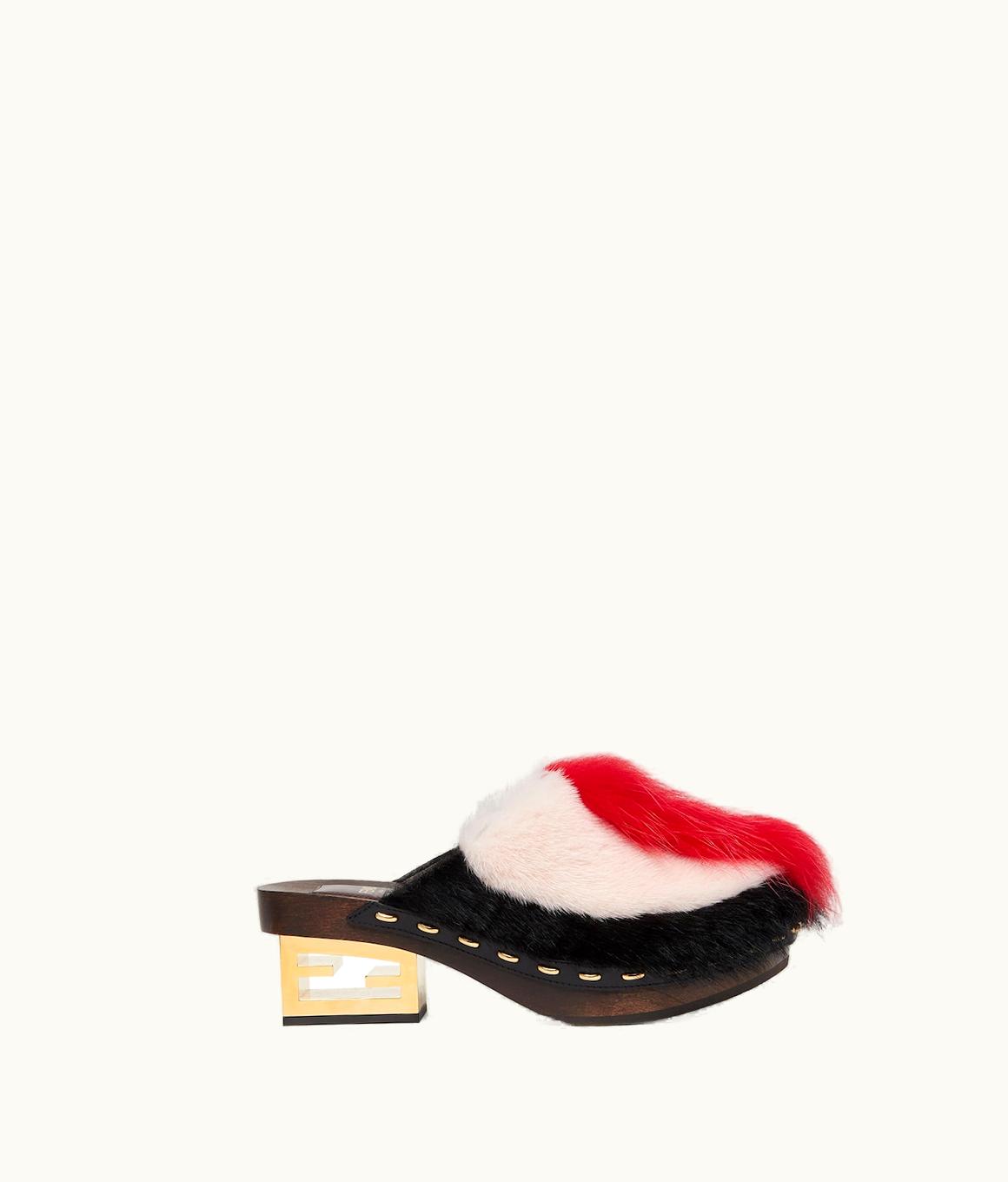 Fendi Baguette Show - Red Fox Fur Medium-Heel Clogs | GLINT