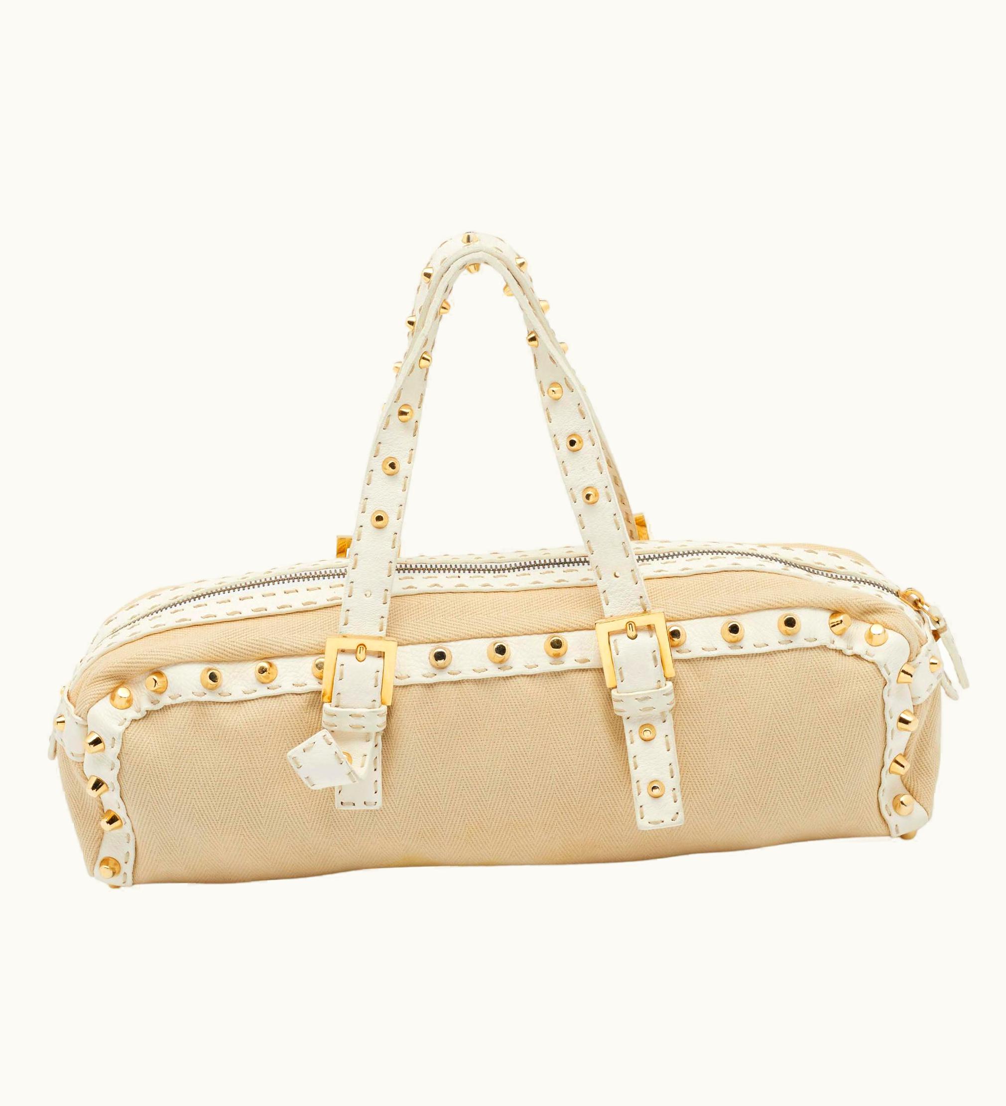 Fendi Beige/White Canvas And Leather Duffel Bag | GLINT