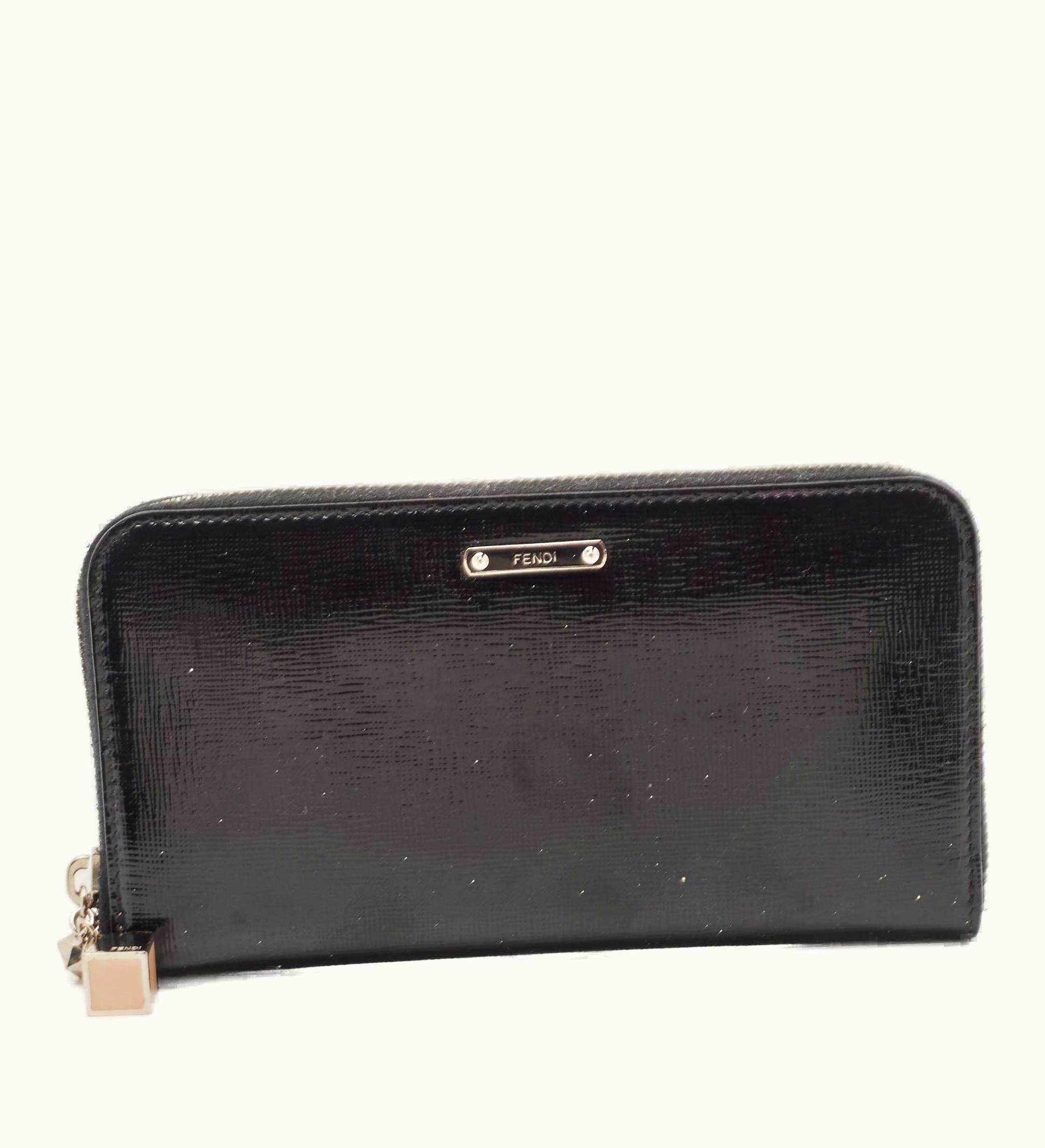 Fendi Black Patent Leather Zip Around Wallet | GLINT