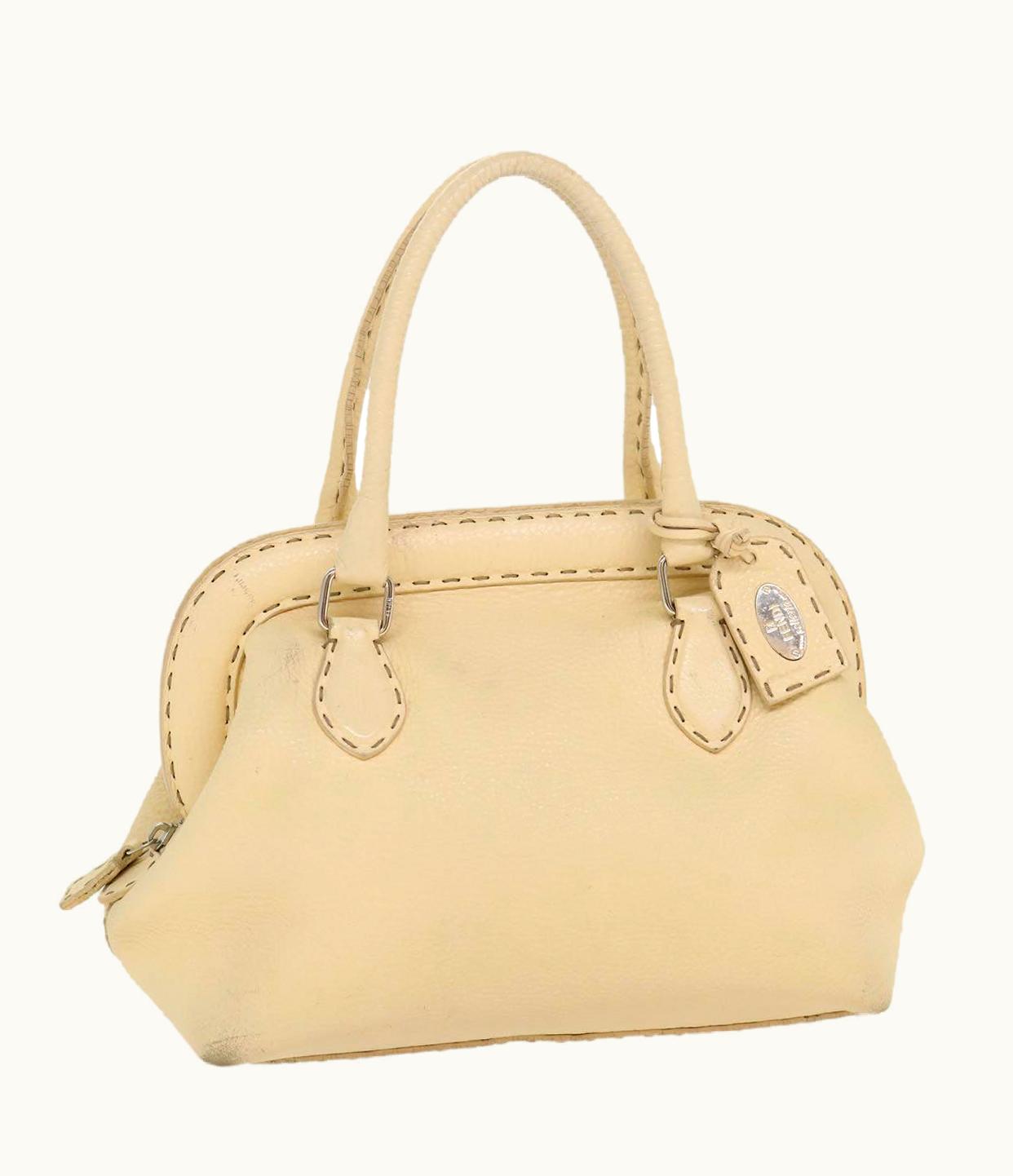 Fendi Celeria Hand Bag Leather Beige | GLINT