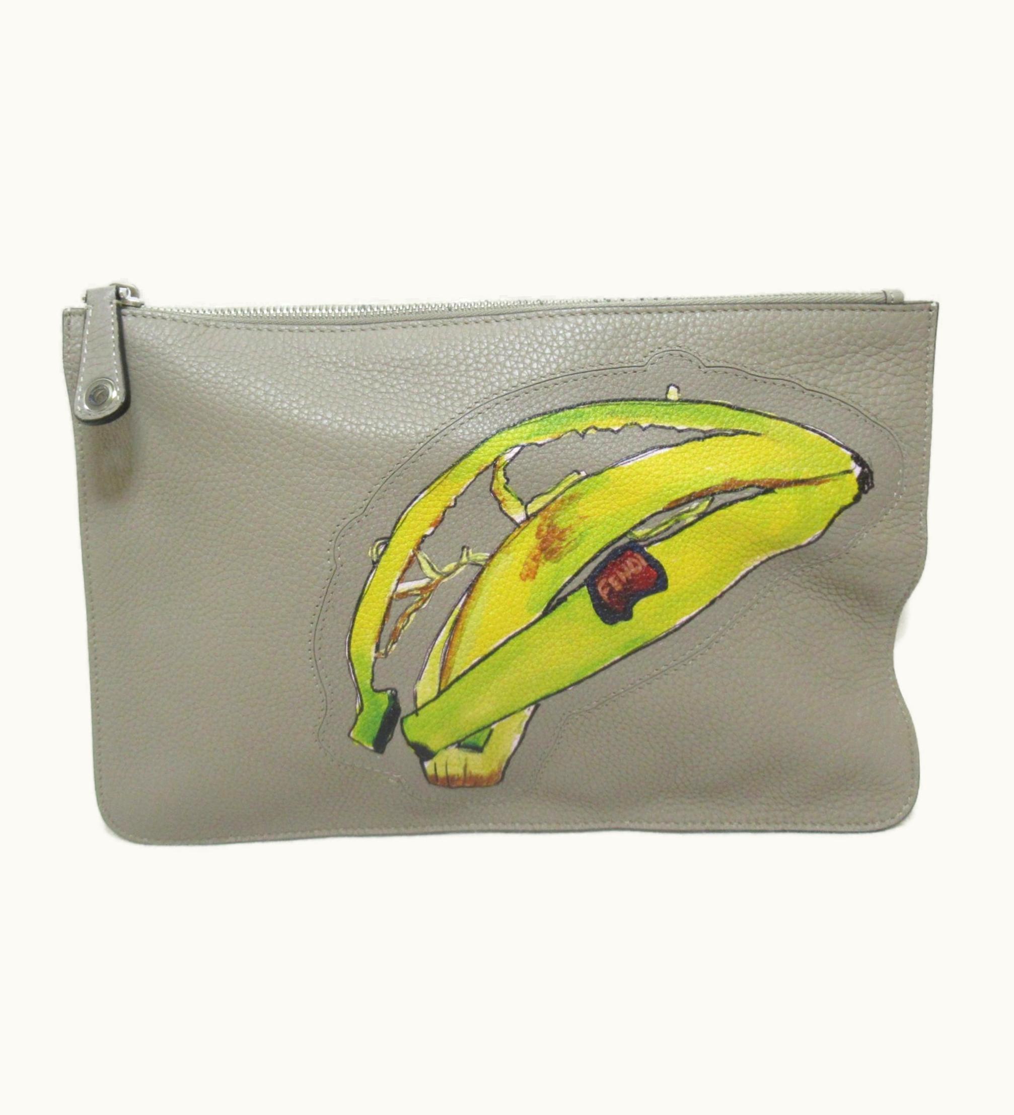 Fendi Clutch Bag Gray Gurege Leather | GLINT