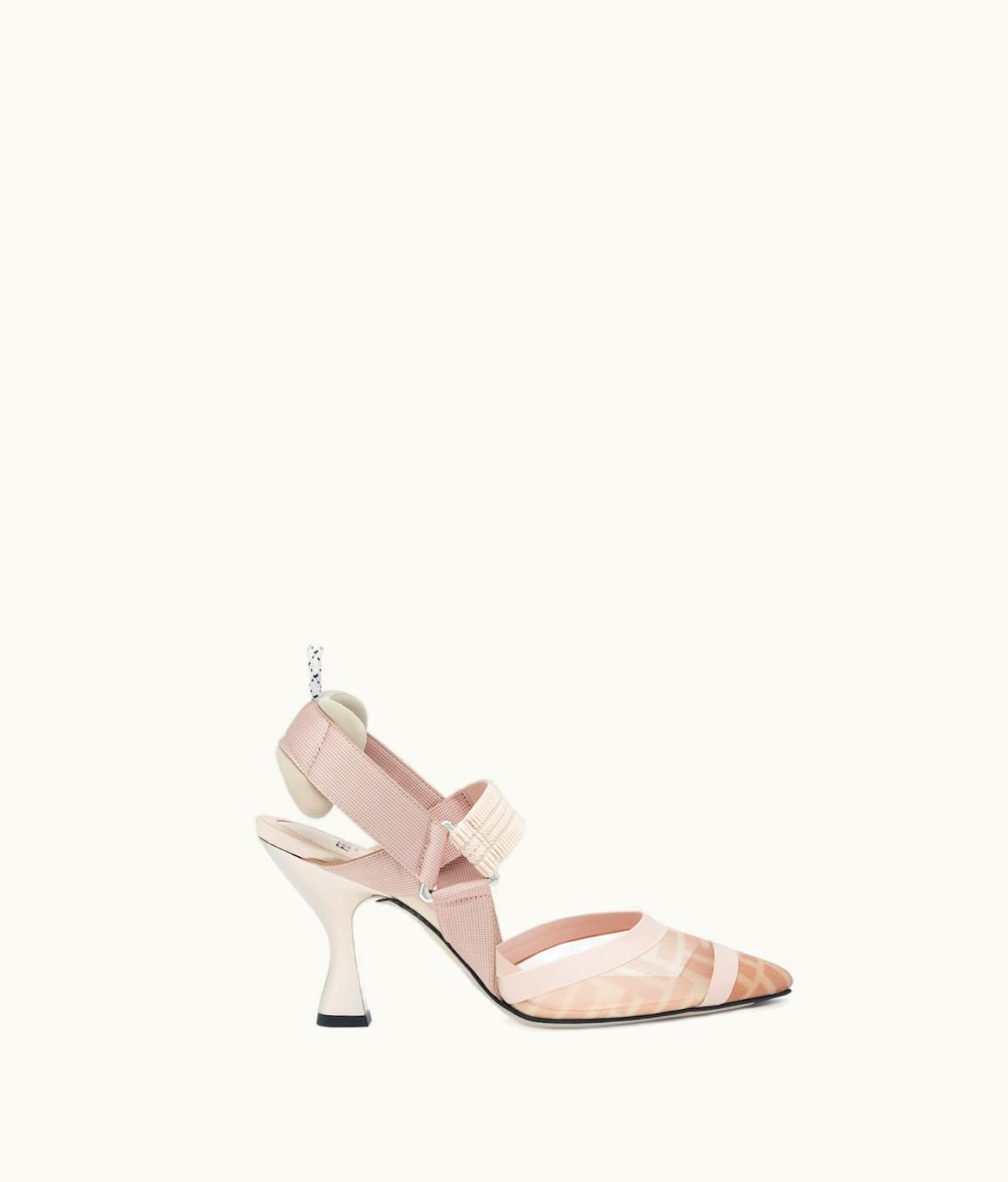 Fendi Colibrì - Nude Leather And Pink Mesh Slingbacks With High Heel | GLINT