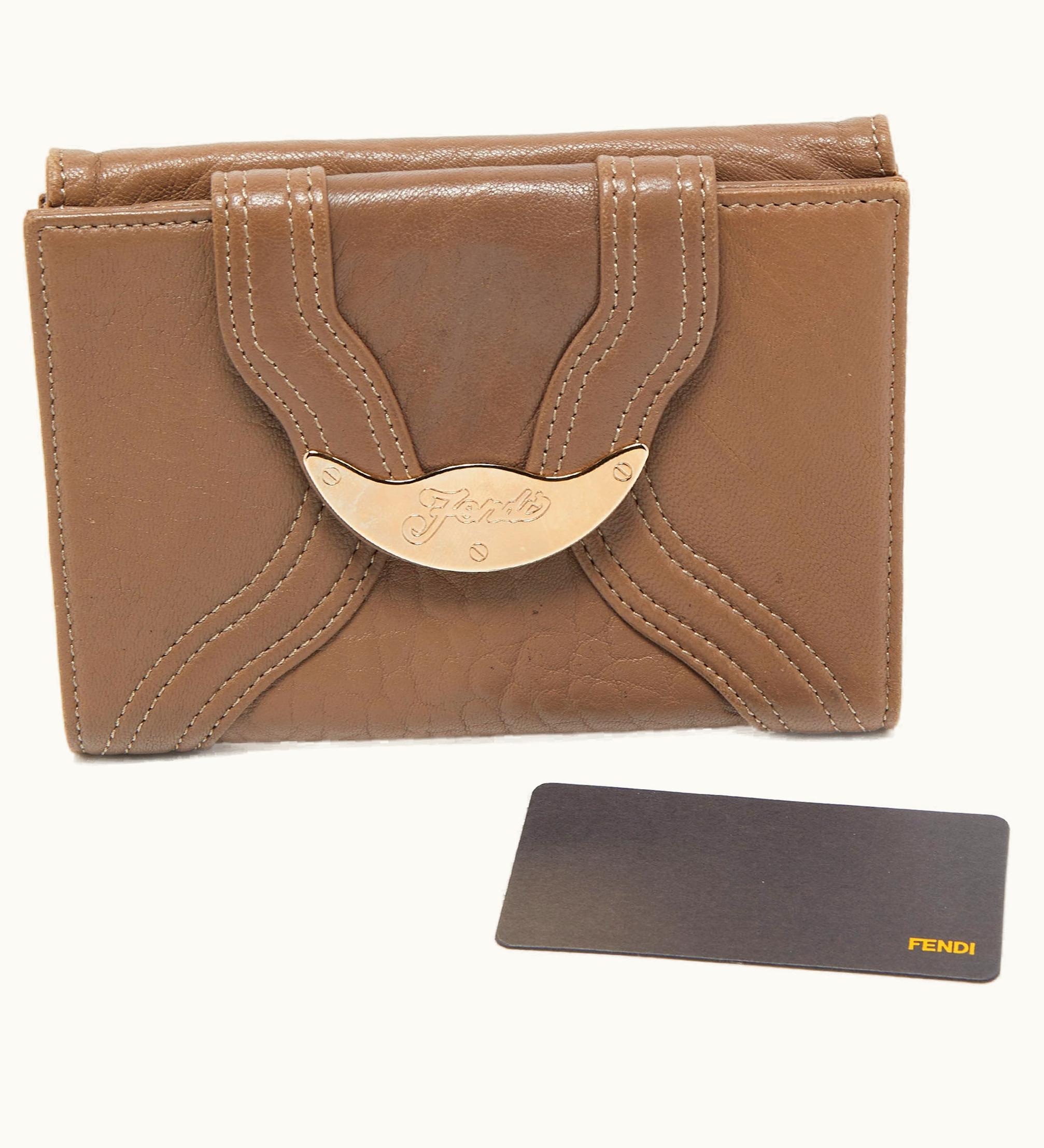 Fendi Dark Beige Leather Compact Flap Wallet | GLINT