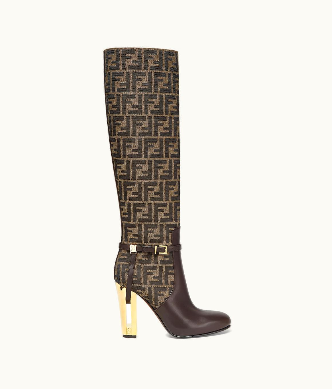 Fendi Delfina FF - Brown Leather High-Heeled Boots | GLINT