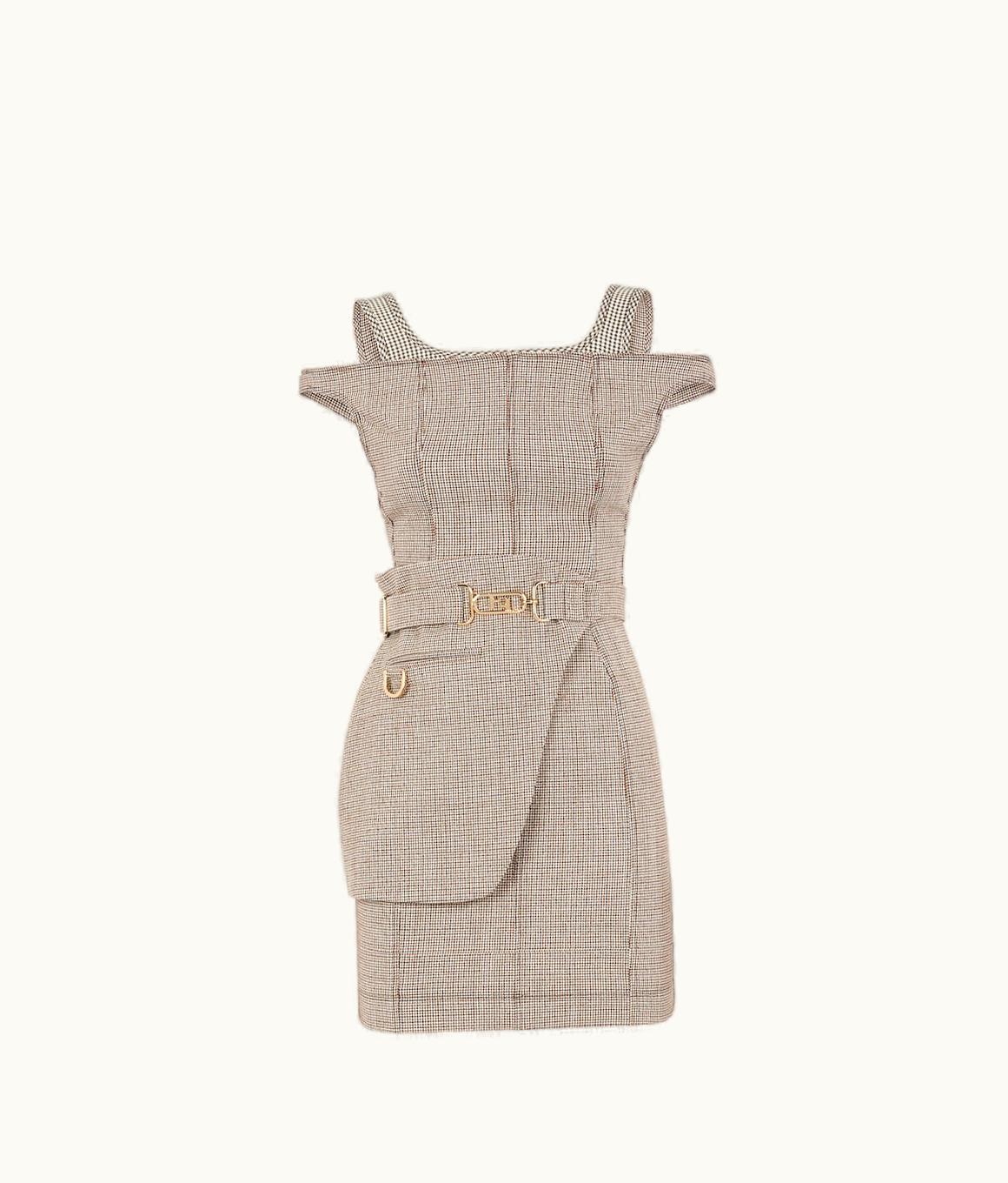 Fendi Dress - Beige Houndstooth Wool Dress | GLINT