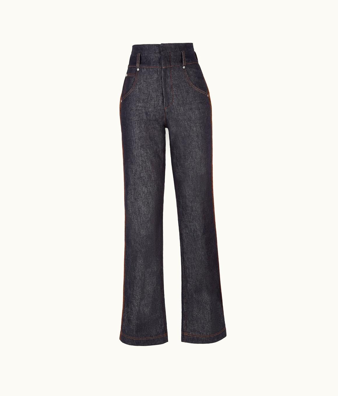 Fendi FF Blue Denim High-Waisted Pants | GLINT