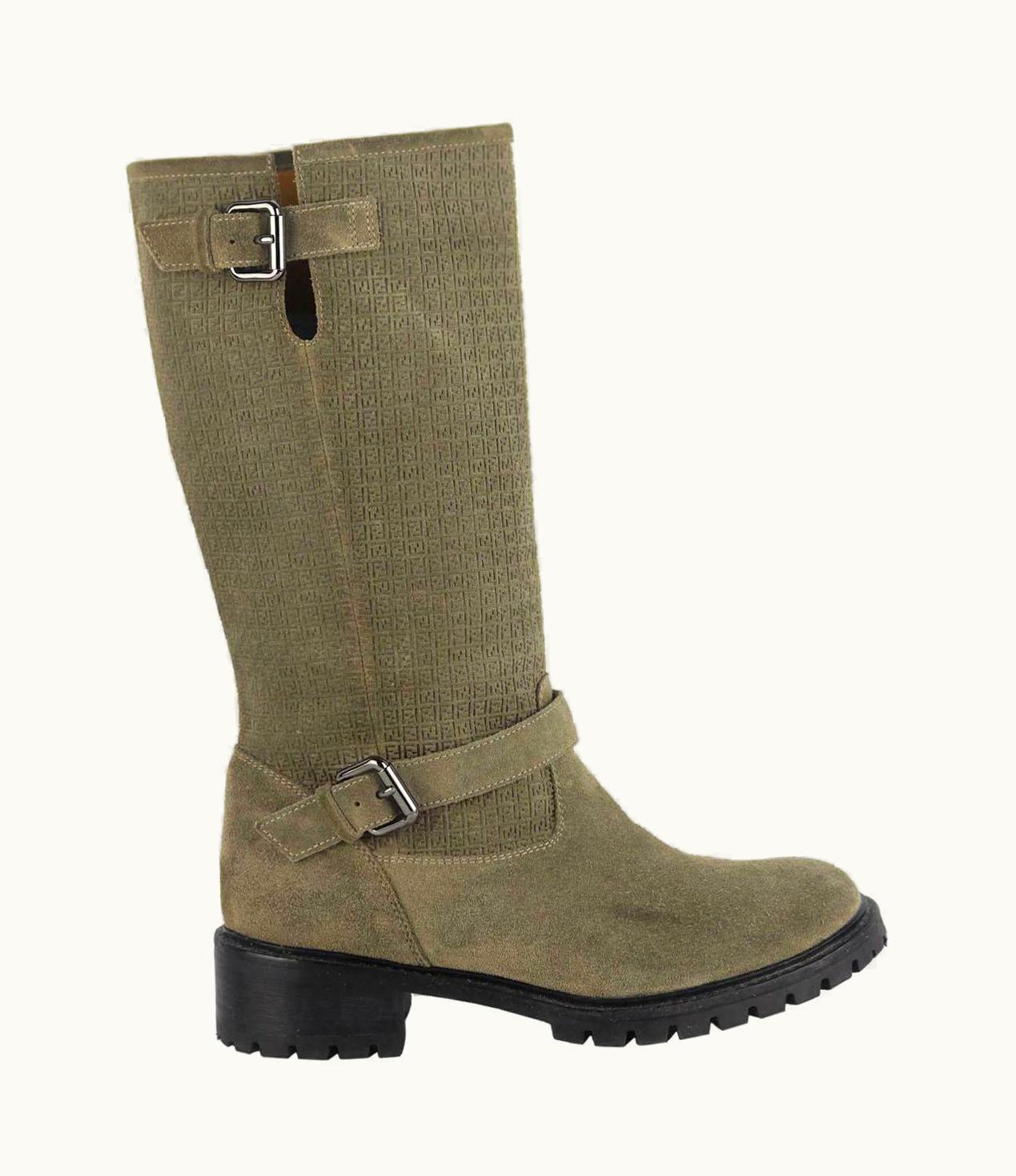 Fendi Ff Embossed Suede Biker Boots | GLINT