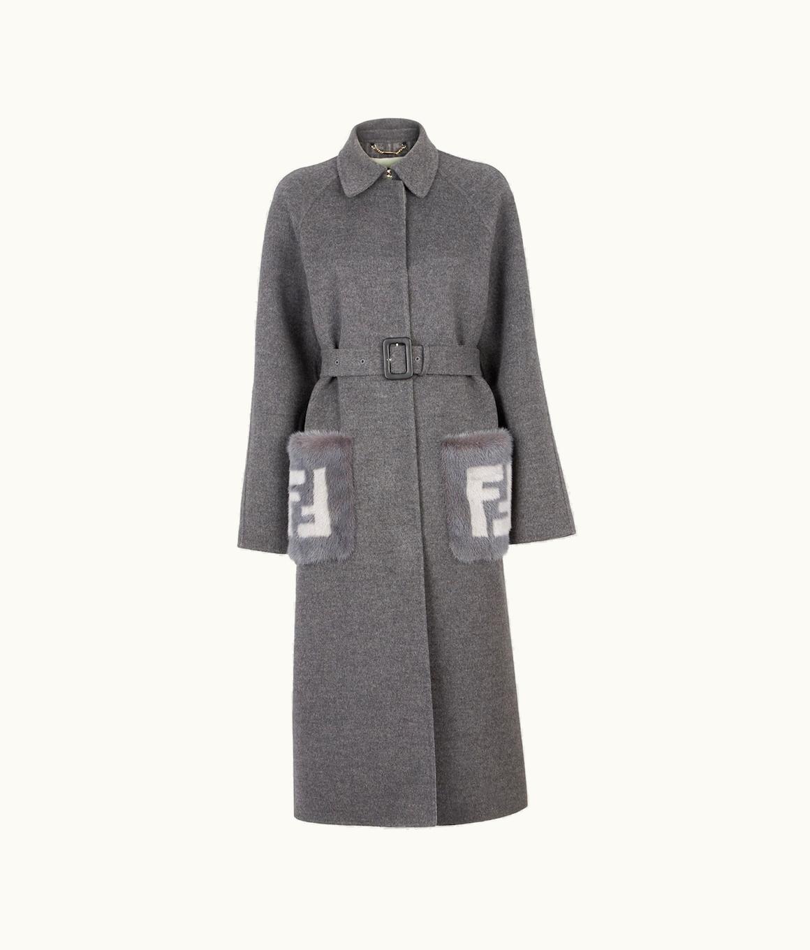 Fendi FF Gray Wool Double-Breasted Overcoat | GLINT
