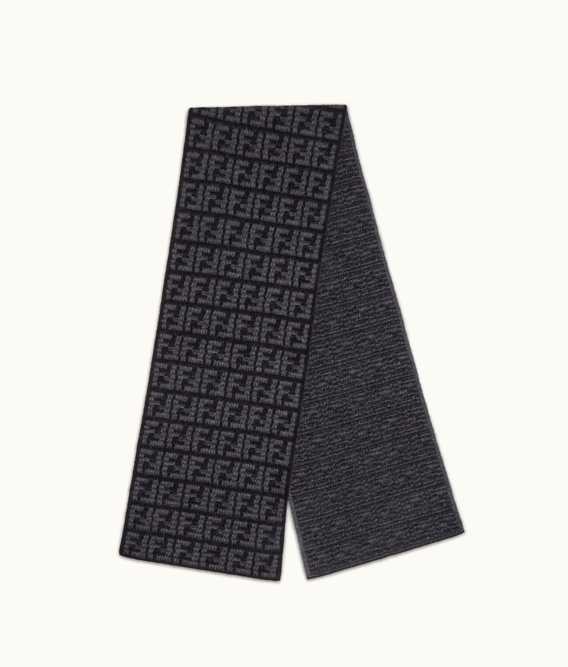 Fendi FF Jacquard Cashmere Scarf Black Anthracite Gray | GLINT