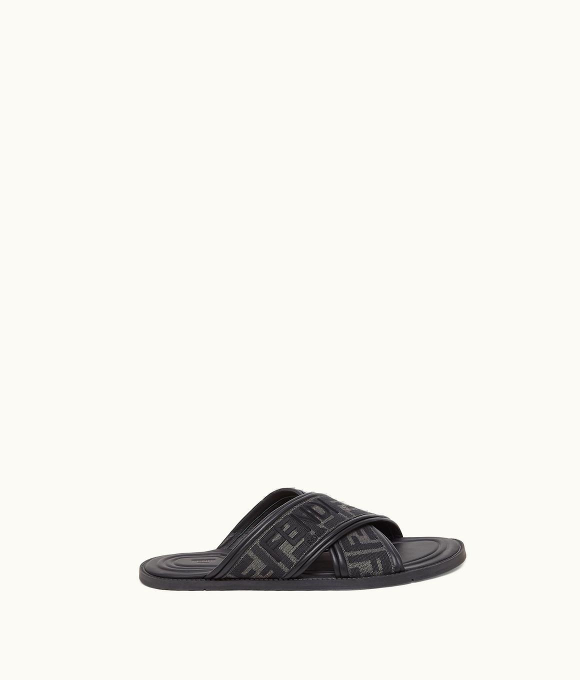 Fendi FF Jacquard Fabric Criss-Cross Slide Sandals Black/Gray | GLINT